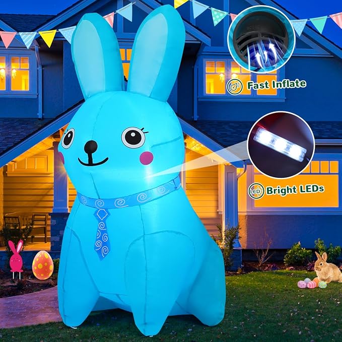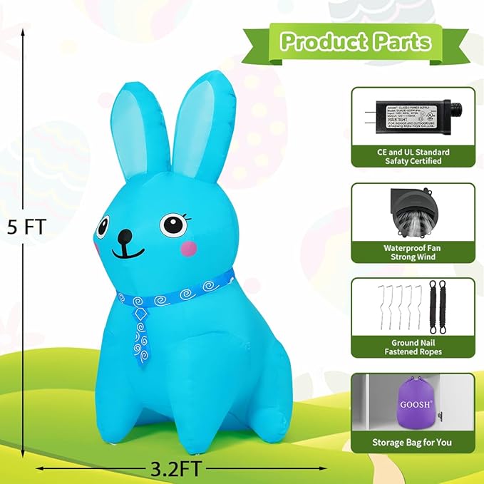 GOOSH 5 FT Easter Inflatables Bunny Blue and Pink Rabbit with Built-in LEDs