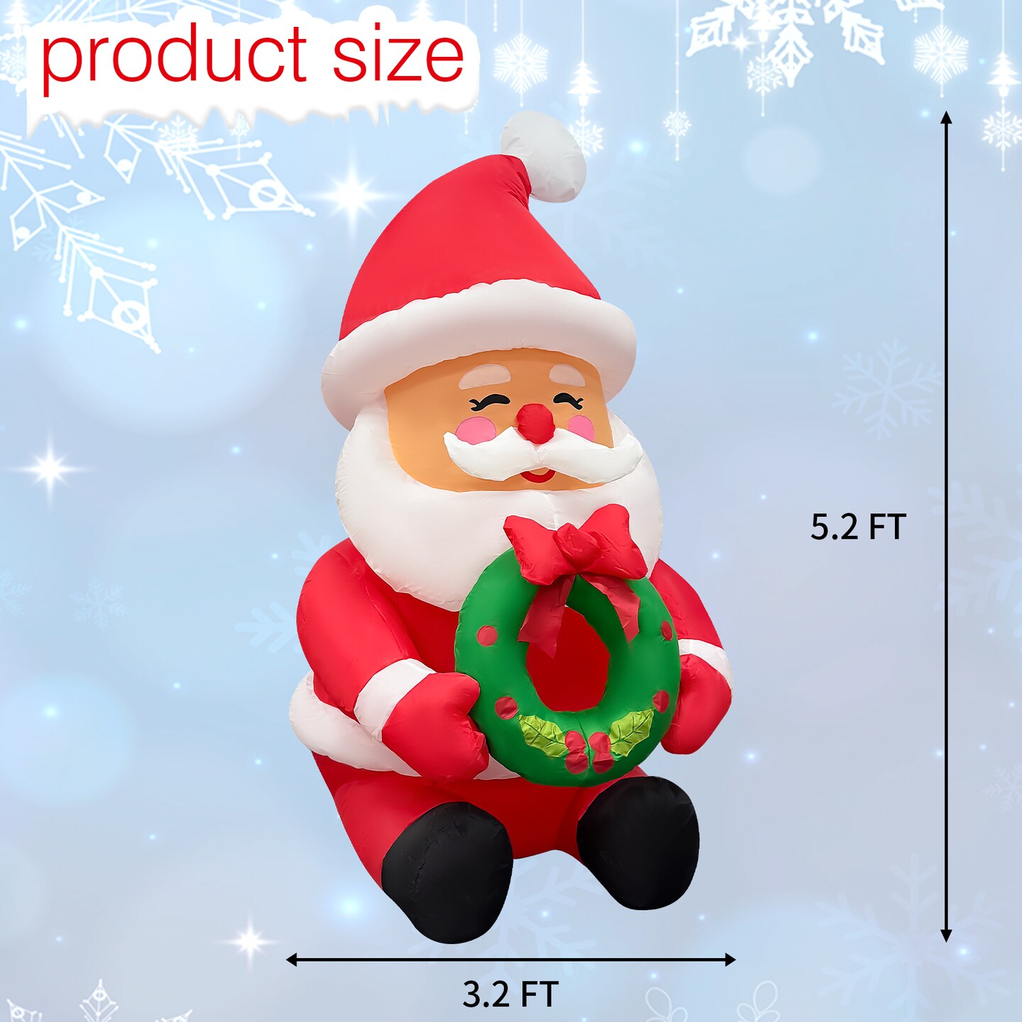 GOOSH 5.2FT Santa Holding Wreath Inflatable with LED Lights for Outdoor Christmas Décor