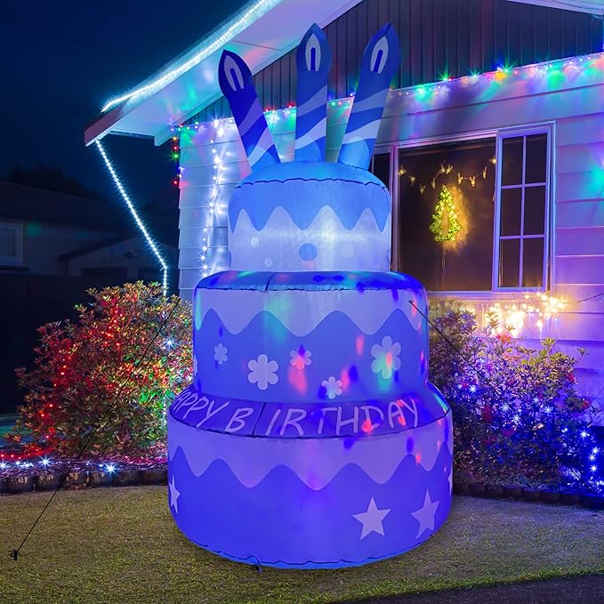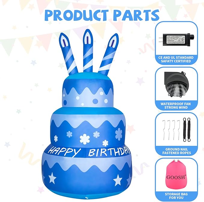 GOOSH 5.5 FT Birthday Inflatables Cake with Candle Happy Birthday with Colorful Rotating LED Lights (Pink)