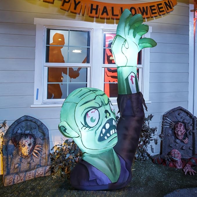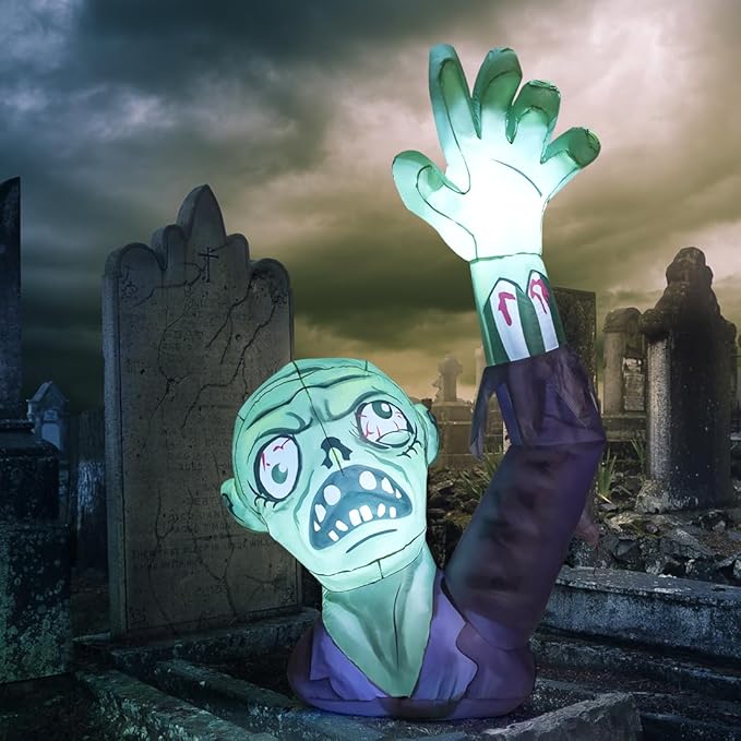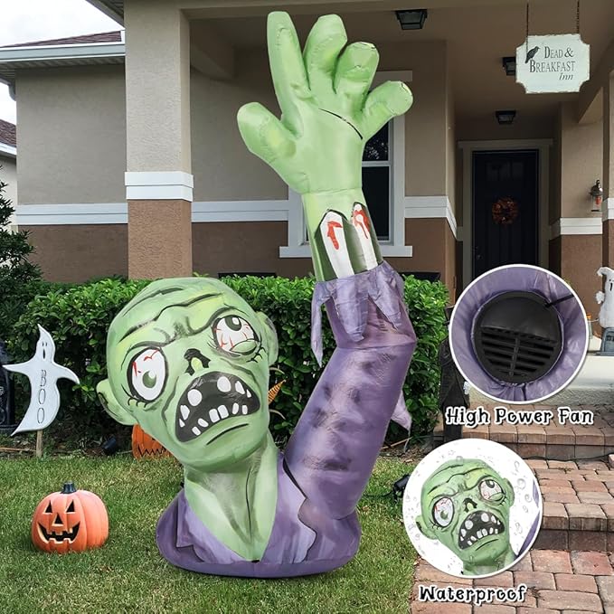 GOOSH 5FT Halloween Inflatables Zombies Blow Up Yard Terror Green Zombies Raise Hands with Built-in LEDs