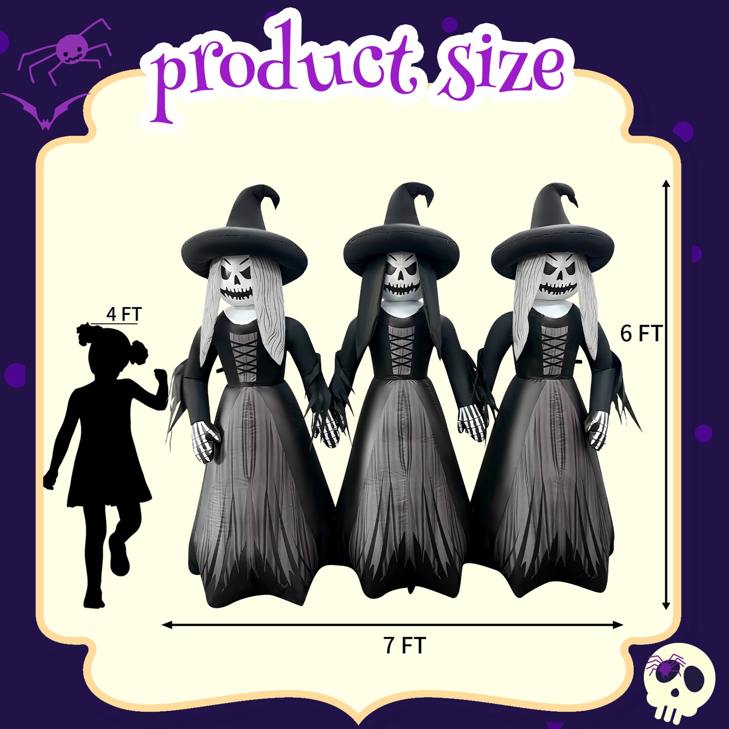GOOSH 7FT Inflatable Trio of Pumpkin Witches – Light-Up Halloween Yard Decoration