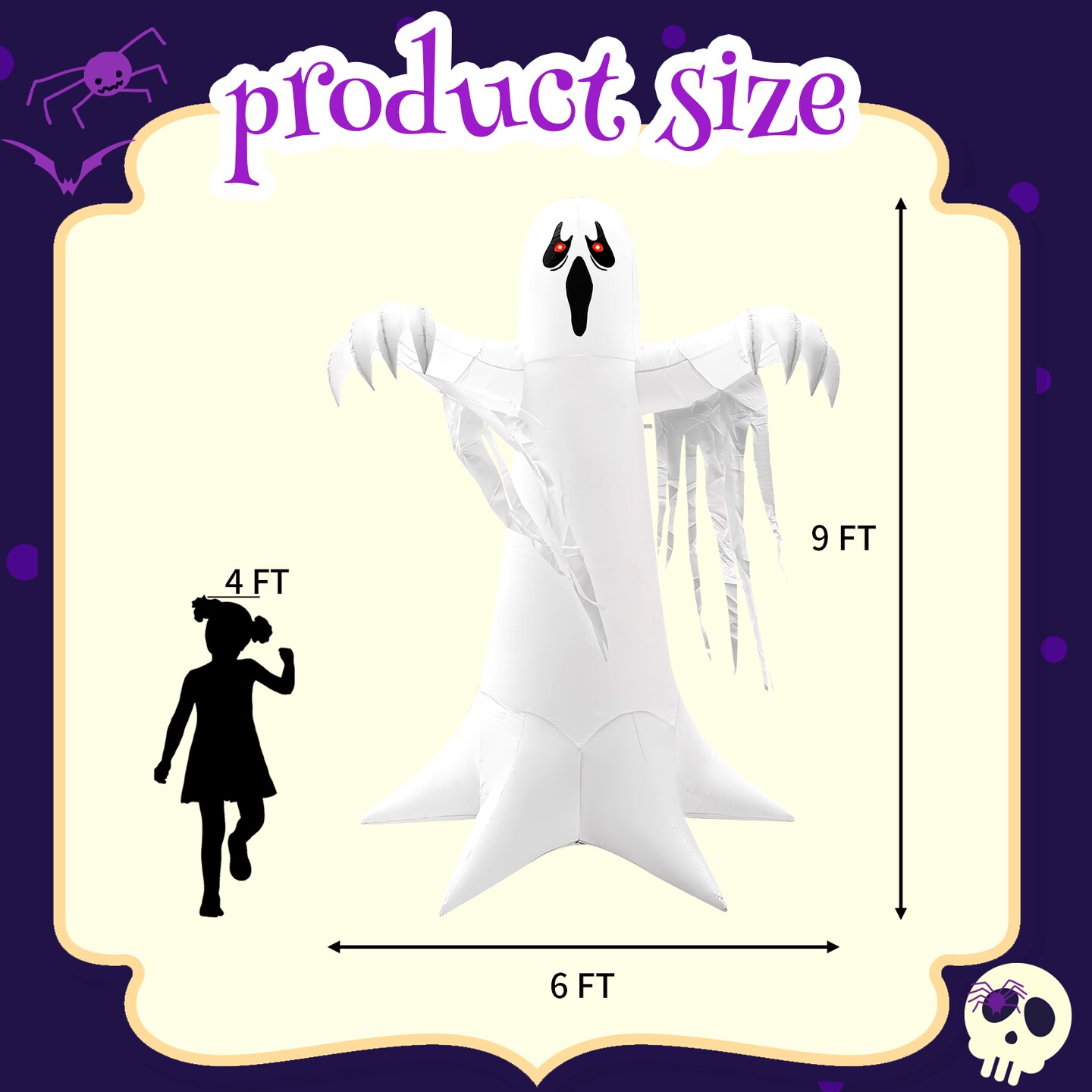 GOOSH 8.2FT Animated Inflatable Ghost with Red LED Lights – Spooky Light-Up Halloween Yard Decoration