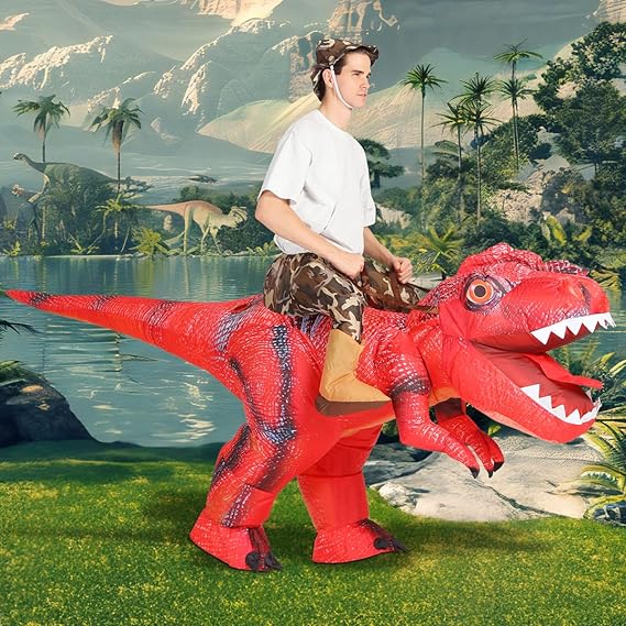 GOOSH Inflatable Dinosaur Costumes for Kids and Adults T Rex Blow Up Ride on Dino Outfits