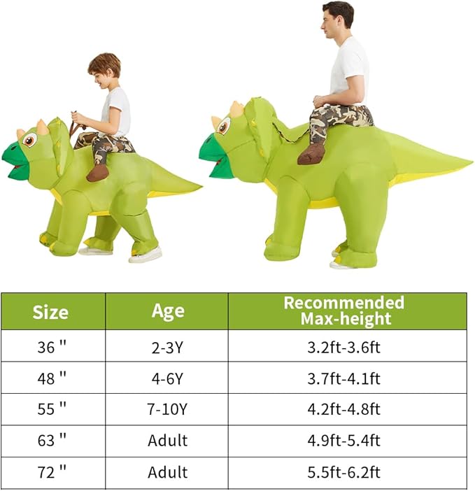 GOOSH Inflatable Kids and Adult Triceratops Costume Halloween Dinosaur Blow up
