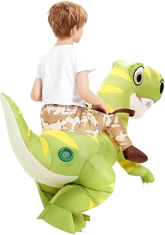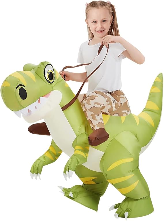 GOOSH Inflatable Kids and Adults Halloween Blow up Funny Riding Dinosaur Costume
