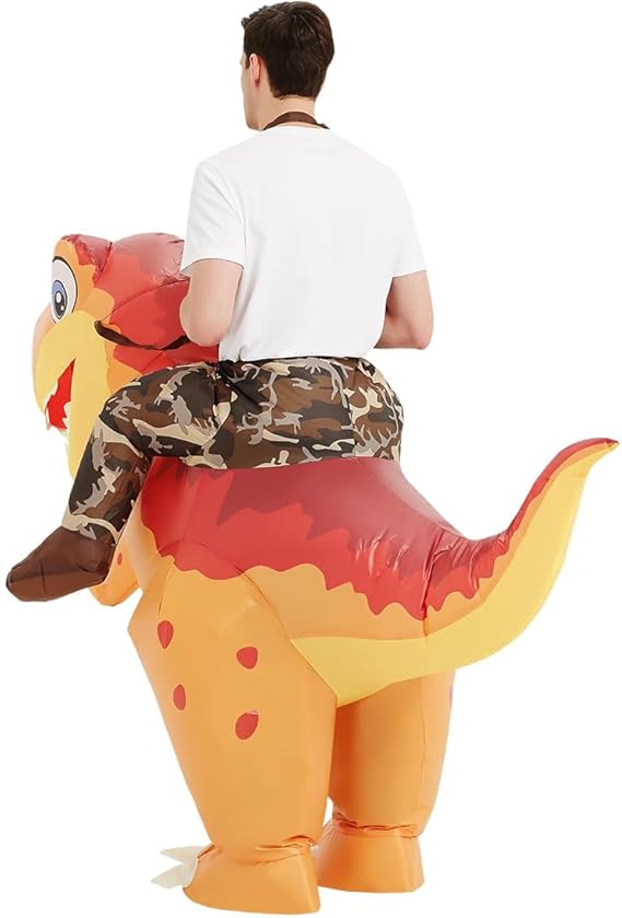 GOOSH Inflatable Ride on Dinosaur Orange Halloween Costume for Kids and Adults