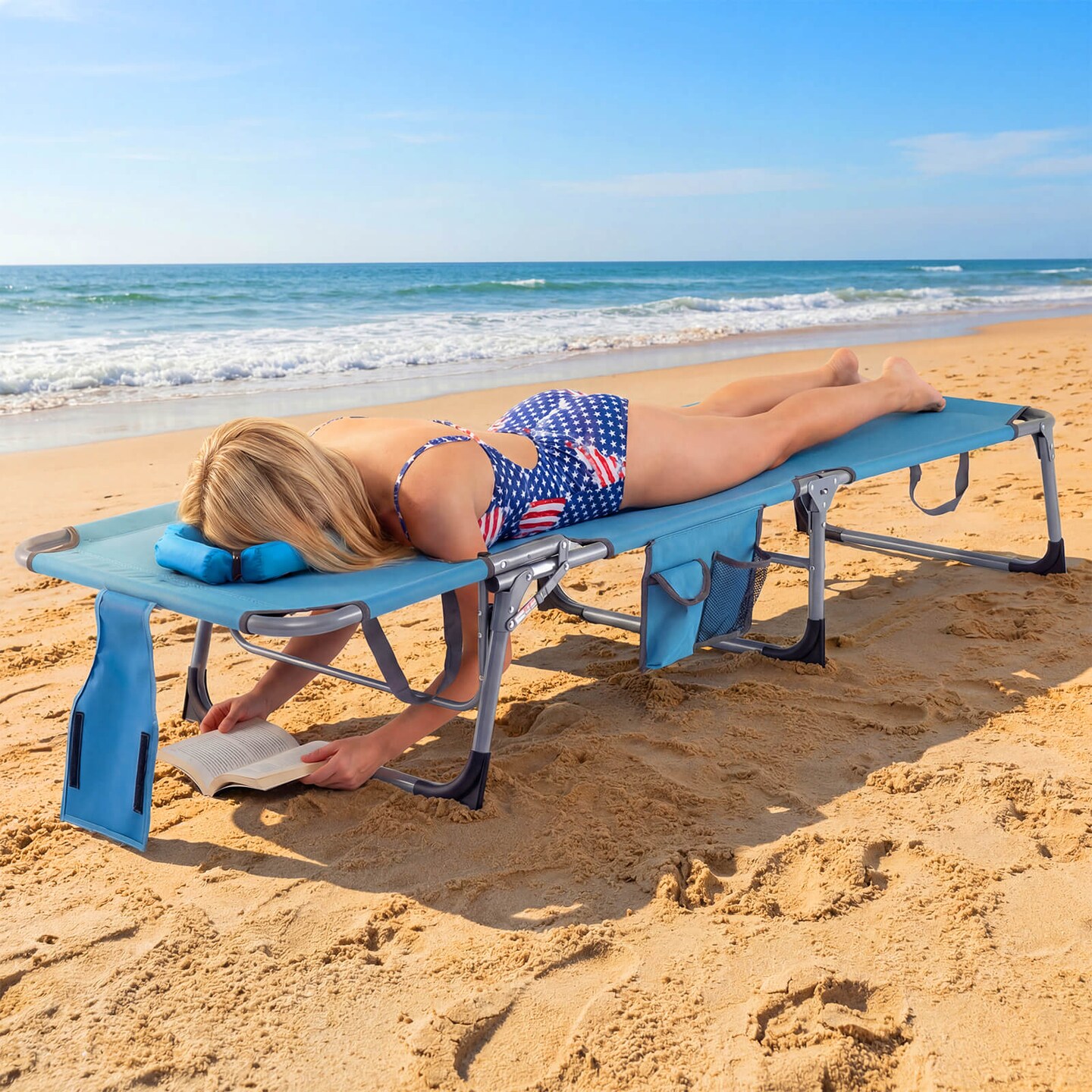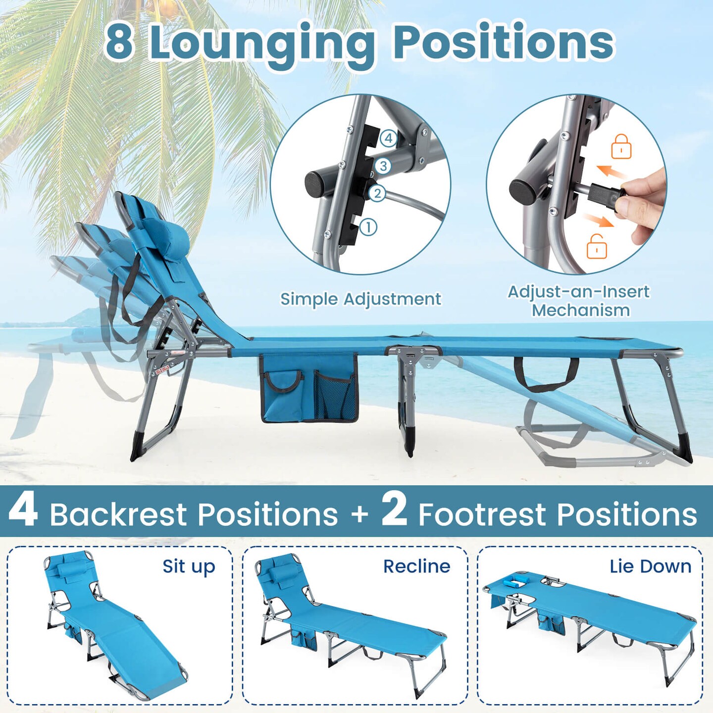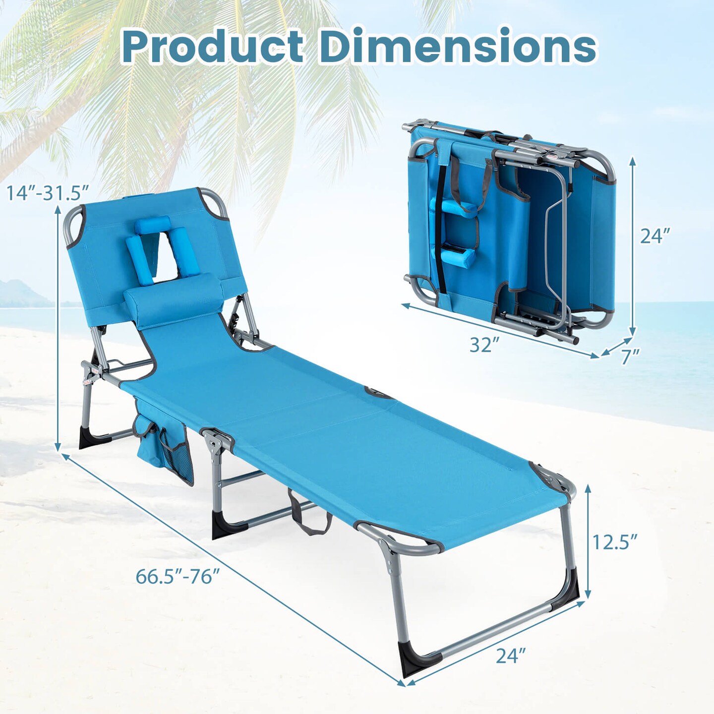 Goplus Outdoor Beach Lounge Chair Folding Chaise Lounge with Pillow Blue/Beige