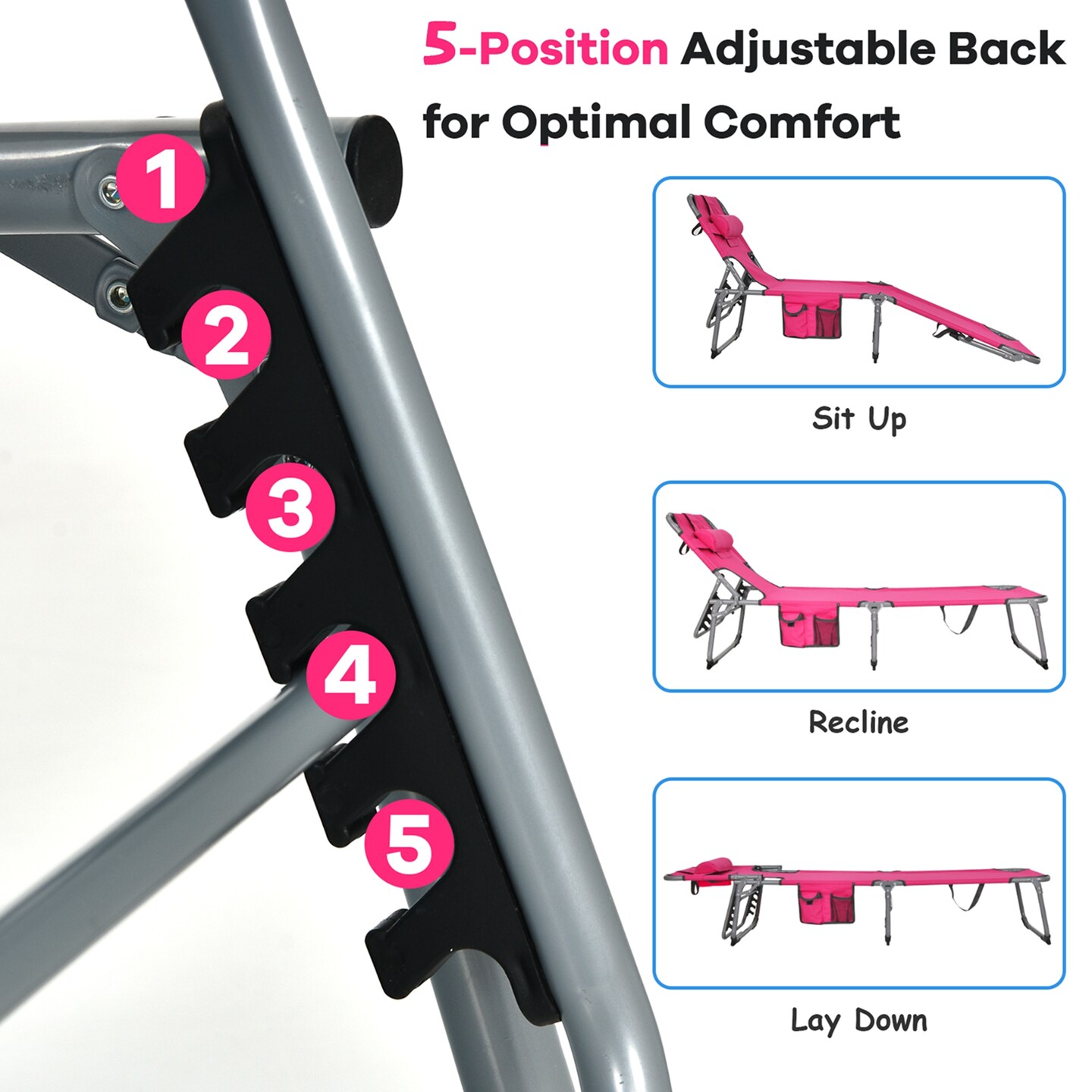 Goplus Outdoor Beach Lounge Chair Folding Chaise Lounge with Pillow Blue\Blue&Green\Black\Grey\Turquoise\Pink\Beige\Light Pink