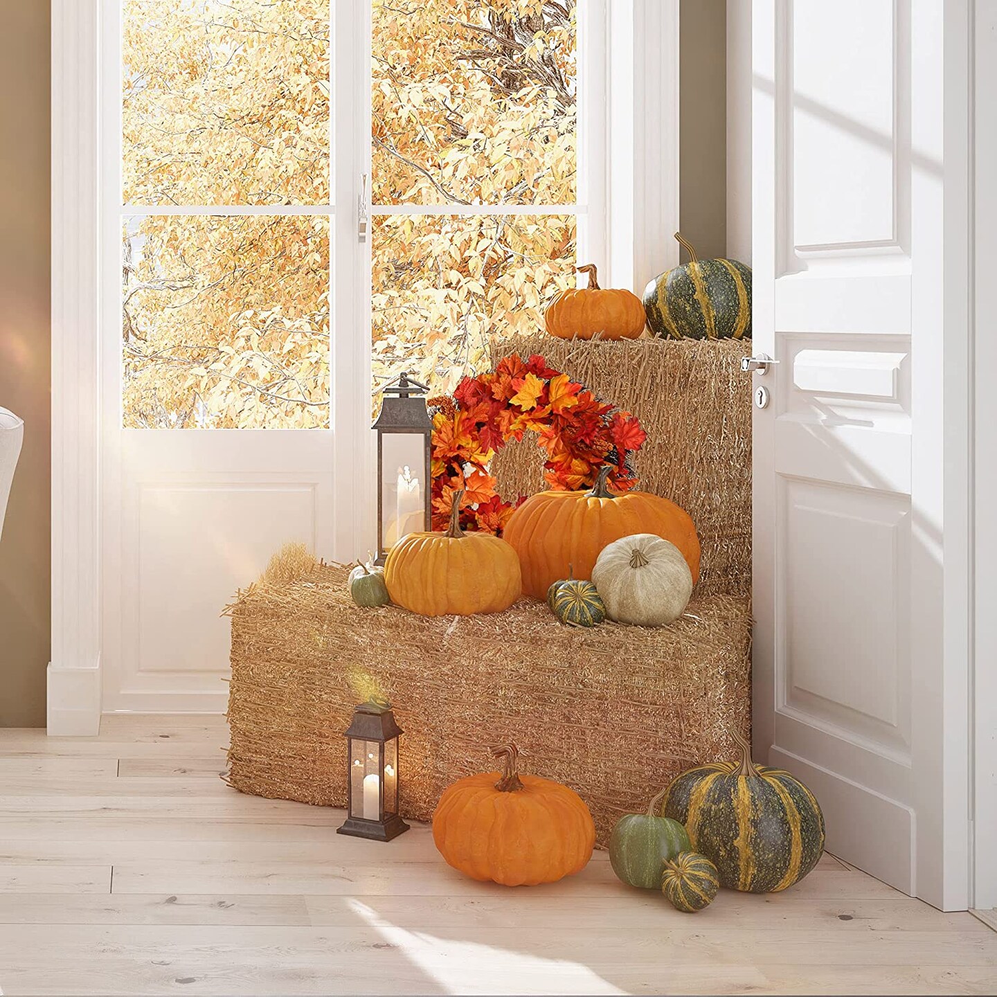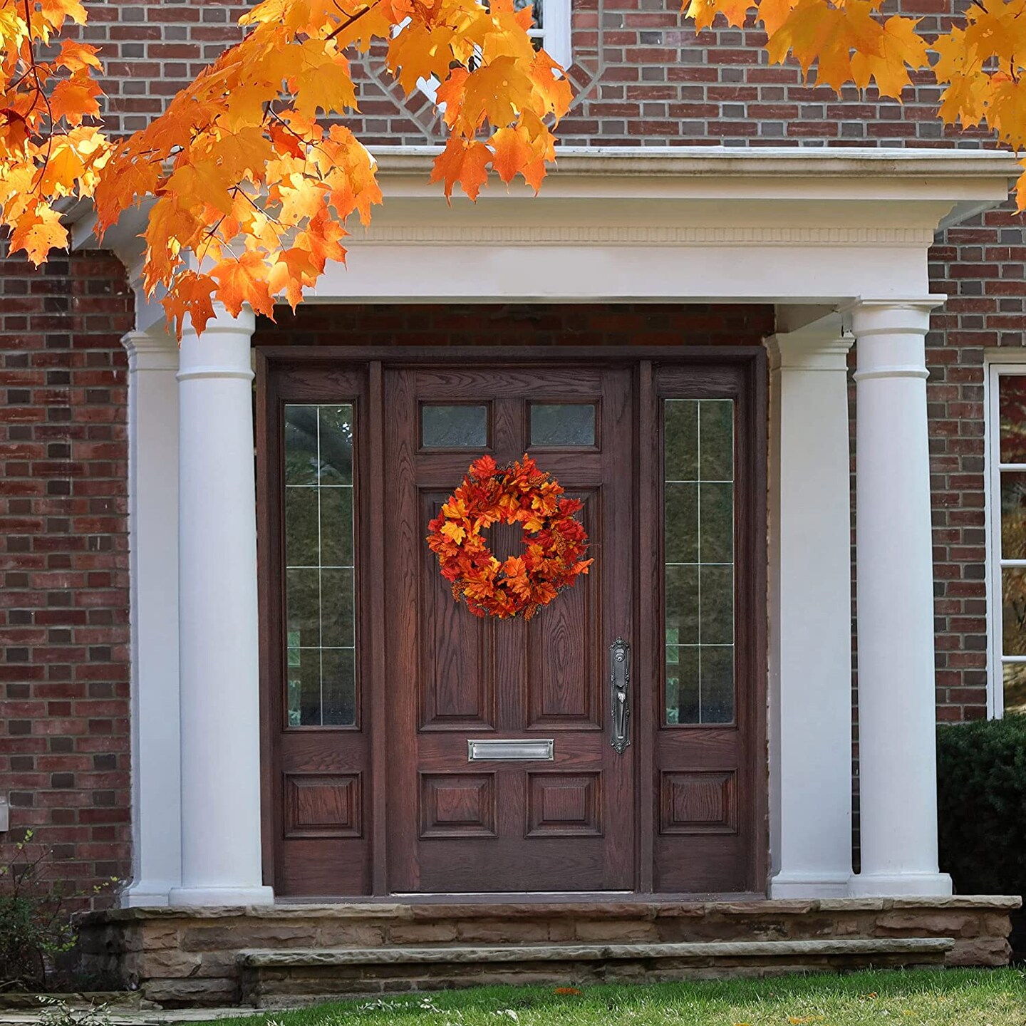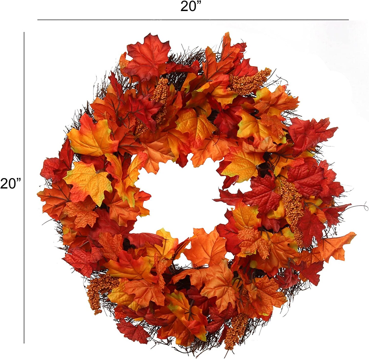 Gorgeous 20" Fall Maple Leaf Wreath - Vibrant & Lifelike Artificial Foliage - Ideal for Autumn Home Decor & Thanksgiving Celebrations