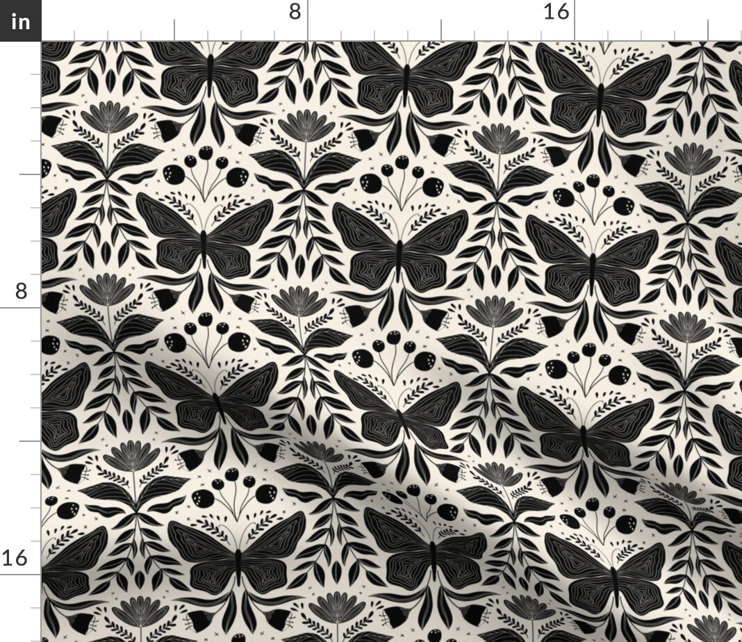 Gothic Butterflies Dark Whimsical Botanical Insect Nature Flowers Moody Vines Black Custom Printed Fabric by Spoonflower Various Fabrics by the Yard or Fat Quarter