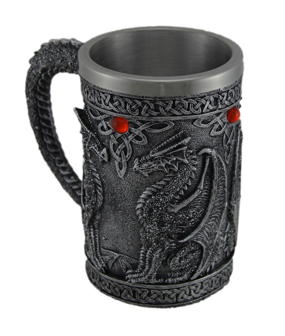 Gothic Dragon Tankard Decorative Blackened Silver Resin Mug Celtic Medieval Cup