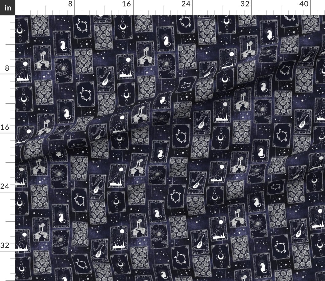 Gothic Halloween Dark Blue Stars Sun Spooky Magic Roses Moon Witch October Custom Printed Fabric by Spoonflower Various Fabrics by the Yard or Fat Quarter