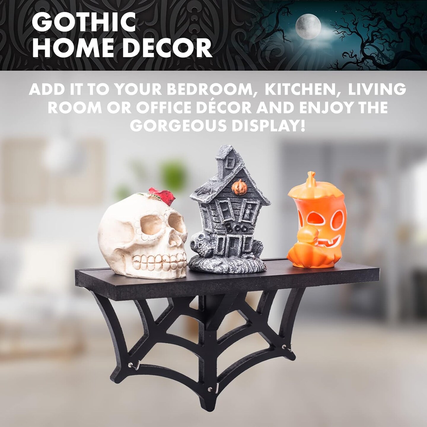 Gothic Halloween Hanging Shelf with Hooks