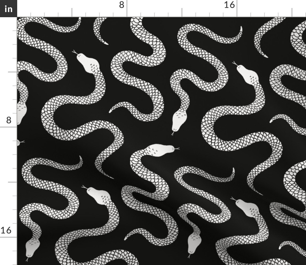 Gothic Serpents Black White Snake Hand Drawn Halloween Slithering Reptile Custom Printed Fabric by Spoonflower Various Fabrics by the Yard or Fat Quarter