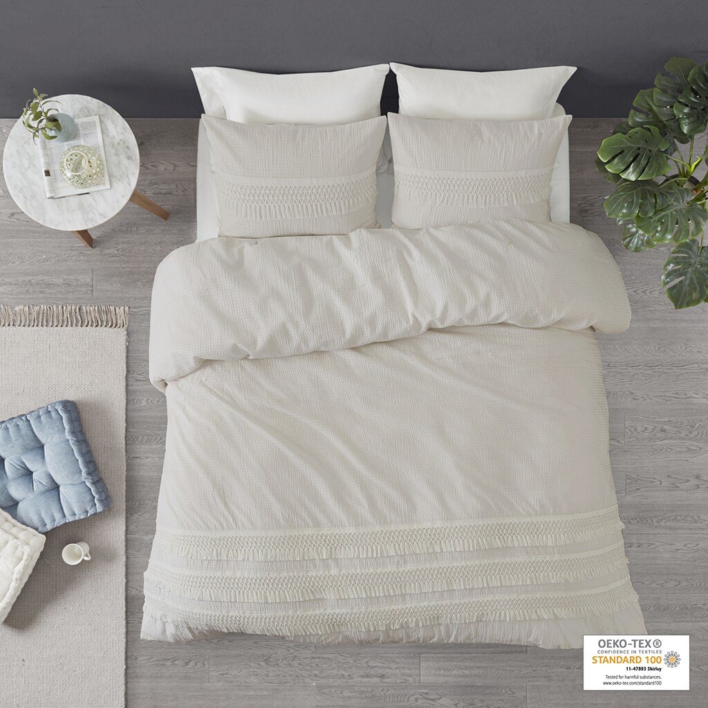 Gracie Mills 3 Piece Cotton Seersucker Duvet Cover Set