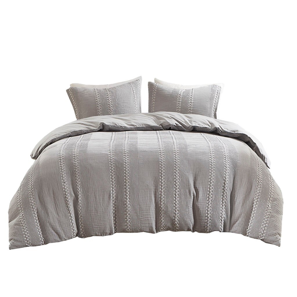 Gracie Mills Caiaphas 3-Piece Solid Lightweight Cotton Waffle Weave Duvet Cover Set - Grace-14757