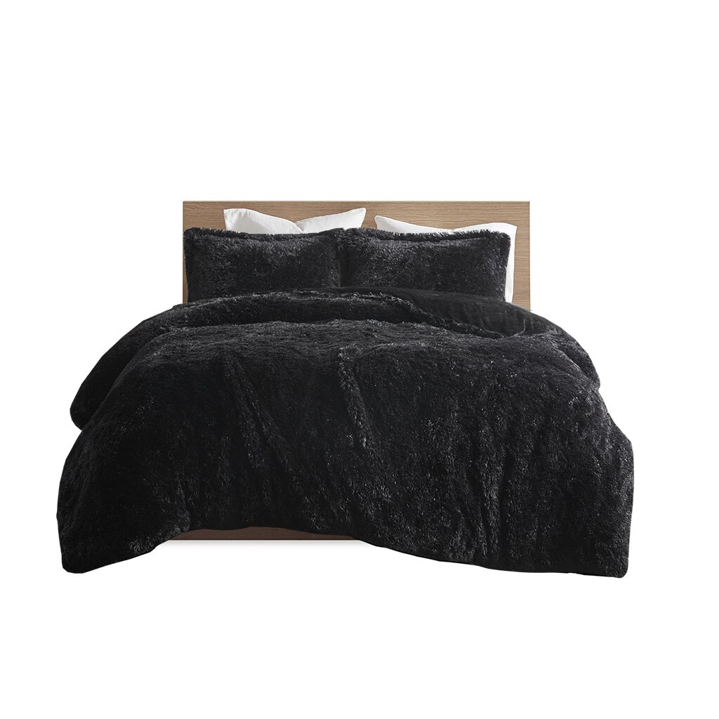 Gracie Mills Susie Solid Shaggy Long Faux Duvet Cover Set - Grace-13593