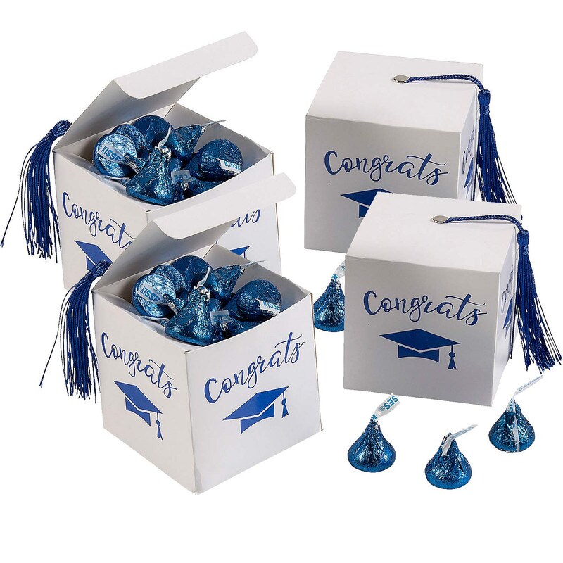 Graduation Favor Boxes with Blue Tassel & Blue Hershey’s Kisses Kit for 25