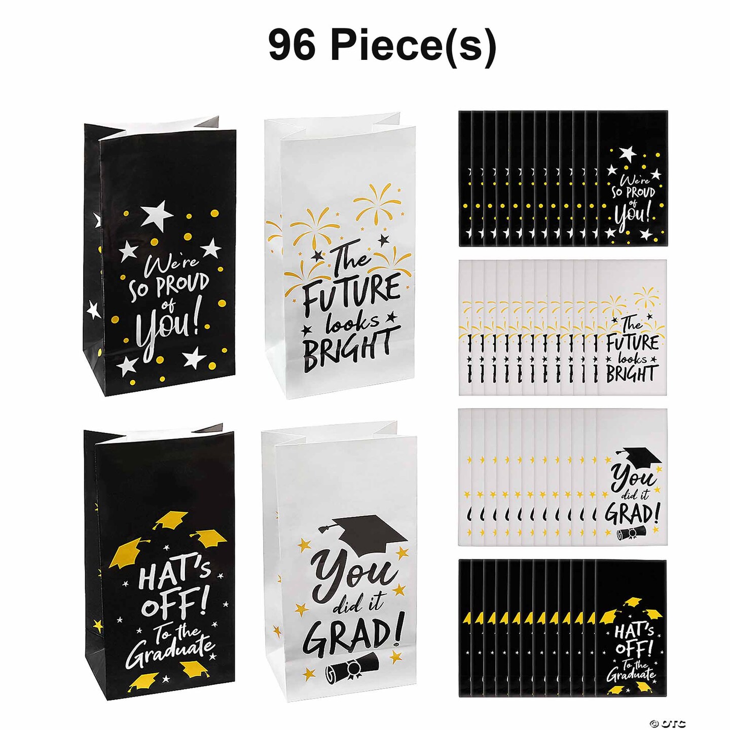 Graduation Paper Treat Bags with Stickers 5" x 10" Bulk 48
