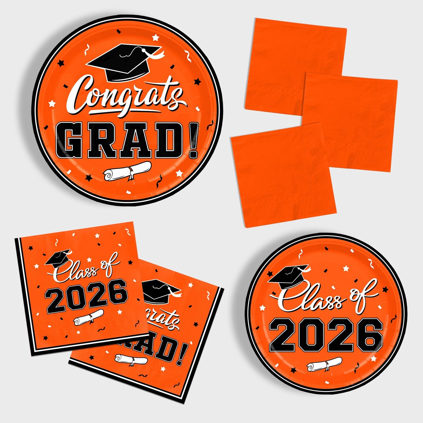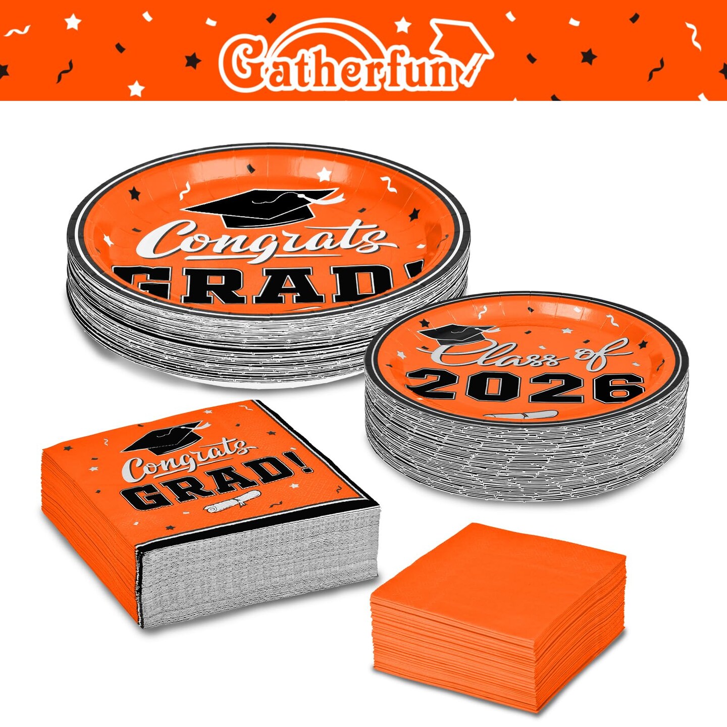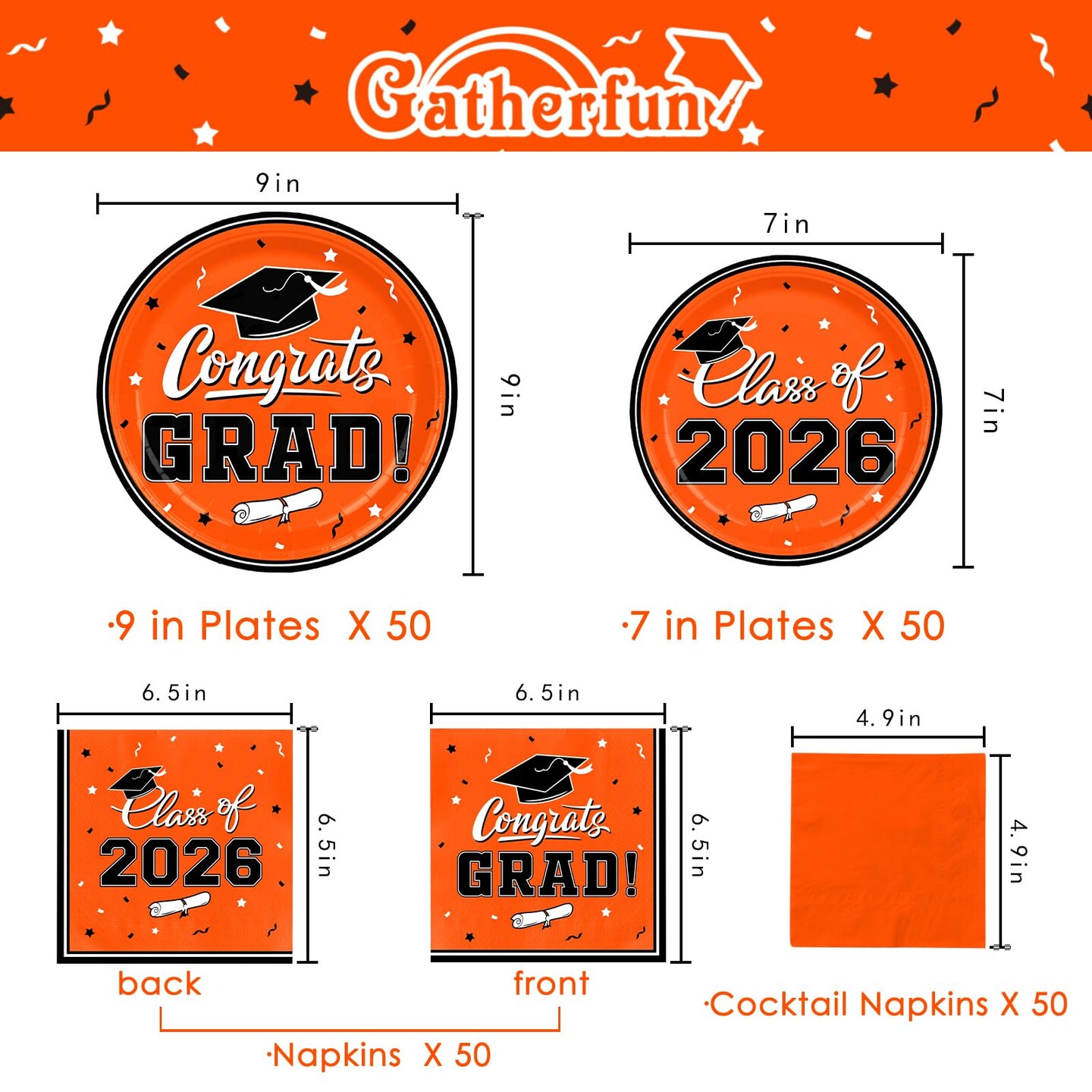 Graduation Party Plates and Napkins Gatherfun Graduation decorations 2026 Orange Disposable Paper Plates Luncheon Napkins Cocktail Napkins for Congrats Grad Party Decorations, Serve 50