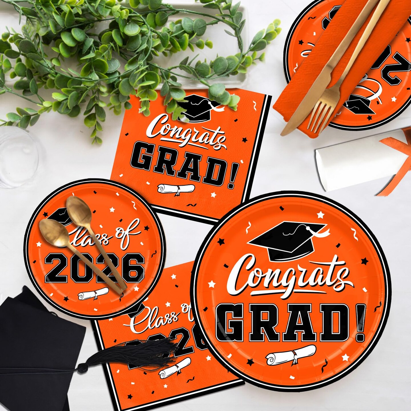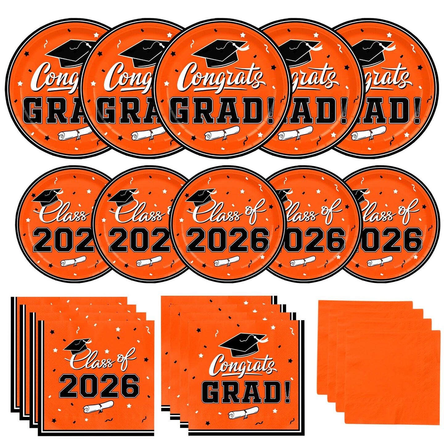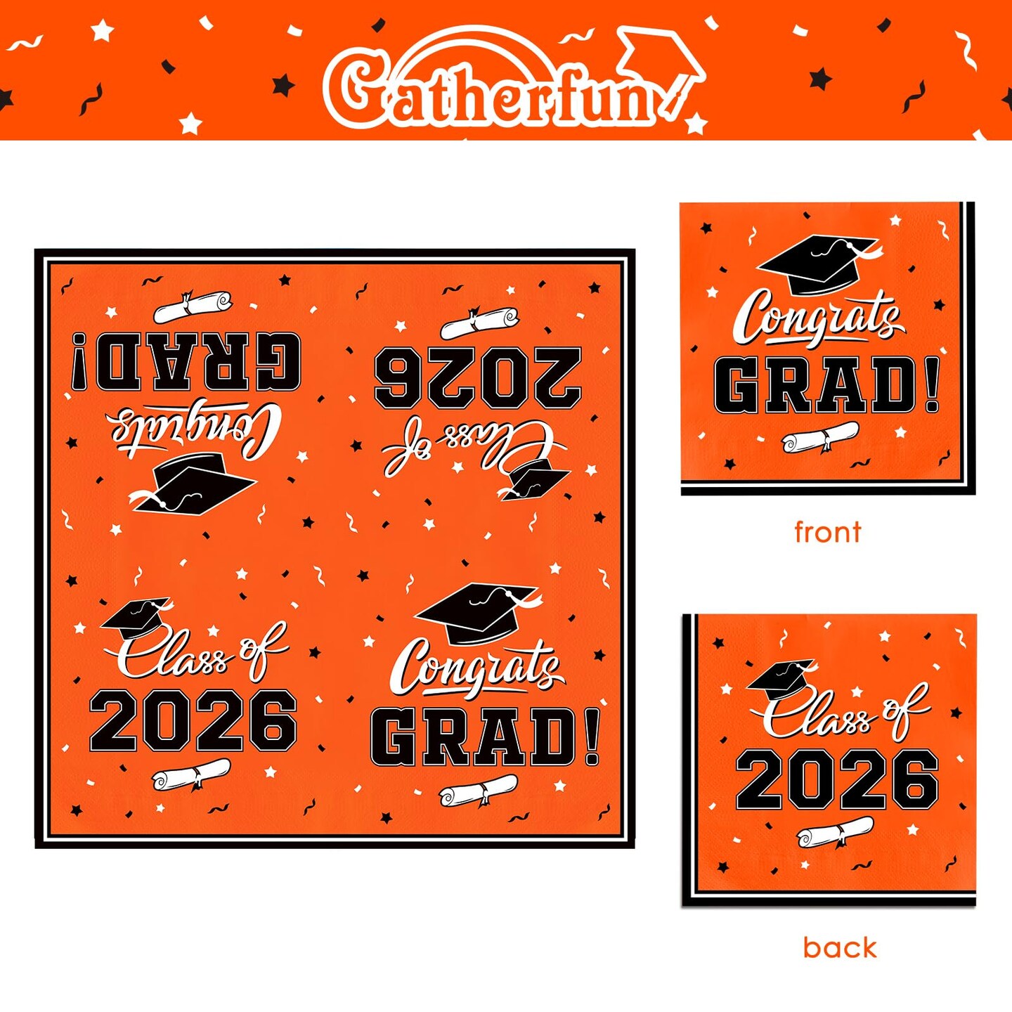 Graduation Party Plates and Napkins Gatherfun Graduation decorations 2026 Orange Disposable Paper Plates Luncheon Napkins Cocktail Napkins for Congrats Grad Party Decorations, Serve 50