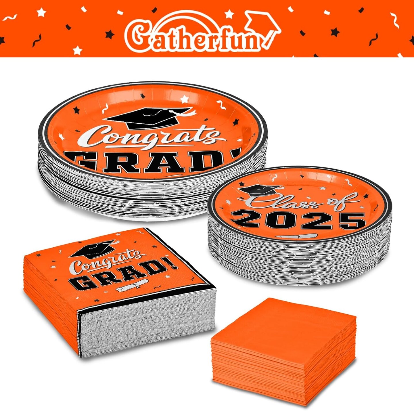 Graduation Party Plates and Napkins Graduation Party Supplies Orange Disposable Paper Plates Luncheon Napkins Cocktail Napkins for Congrats Grad Party Decorations, Serve 50