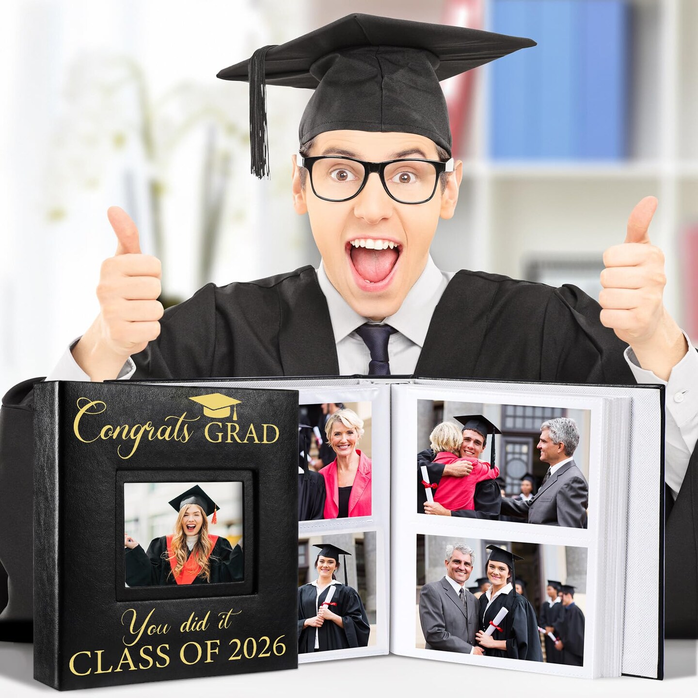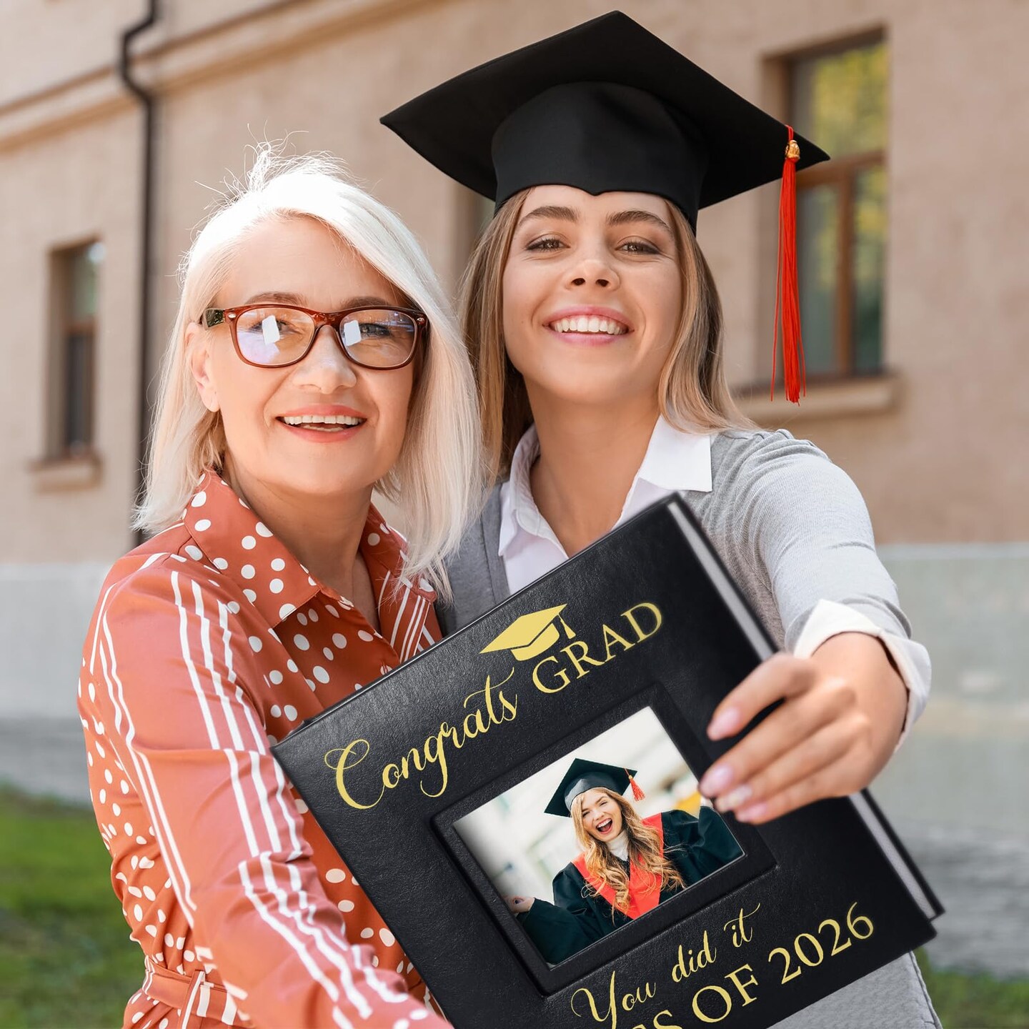 Graduation Photo Album Holds 200 Pcs 4 x 6 Inch Photo 2026 Graduation Leather Album with Front Window Memory Scrapbook for College Graduate Gift (Delicate)