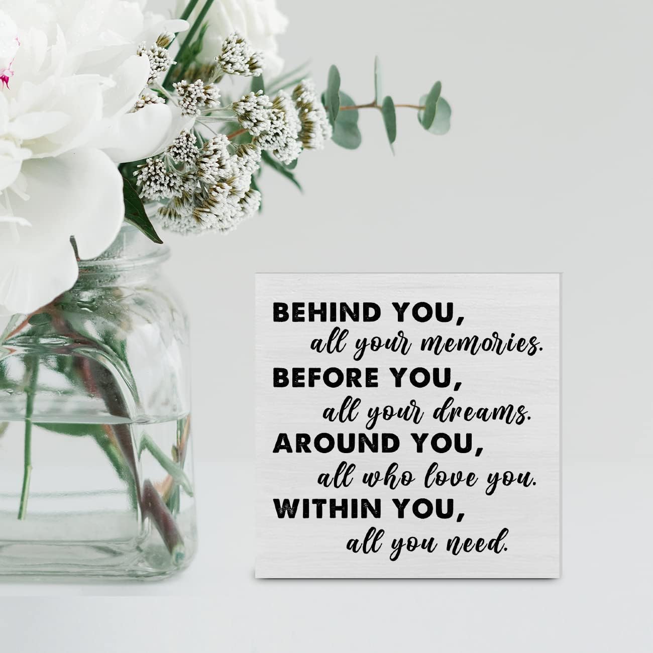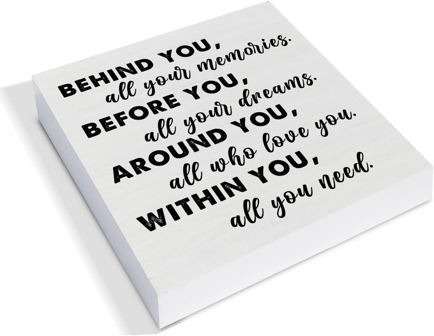 Graduation Quote Wood Box Sign Decor Desk Sign Positive Behind You All Your Memories Wooden Box Block Sign Rustic Home Shelf Wall Decoration Grad Gift