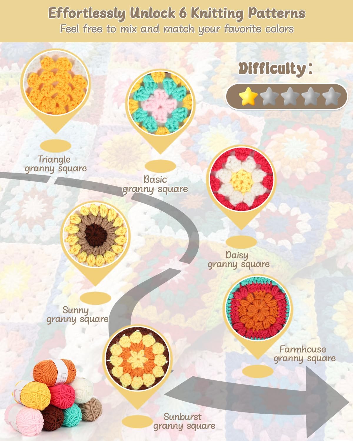 Granny Square Blanket & Bags Crochet Kit Kit