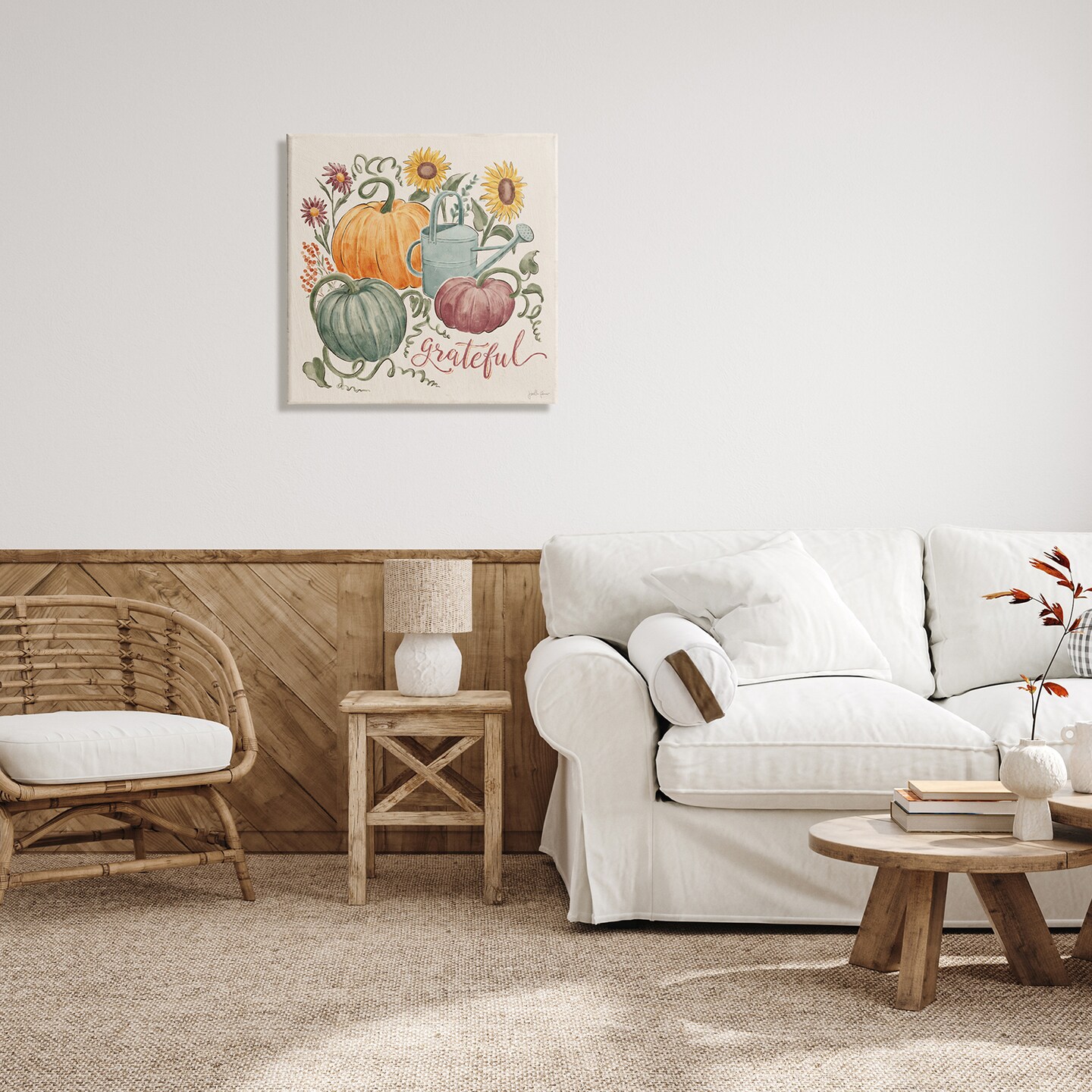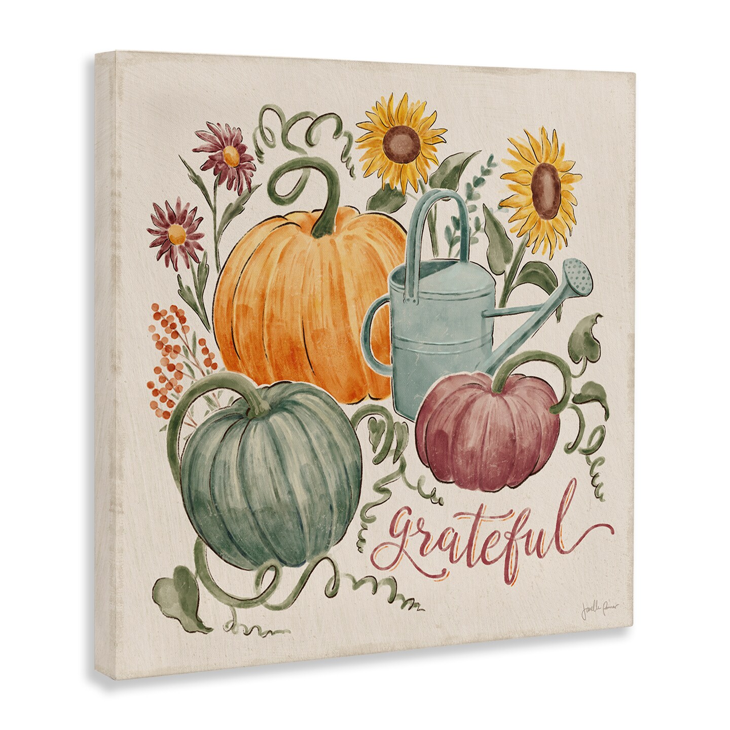 Grateful Script Warm Pumpkins Autumn Plants Sunflowers Canvas Art