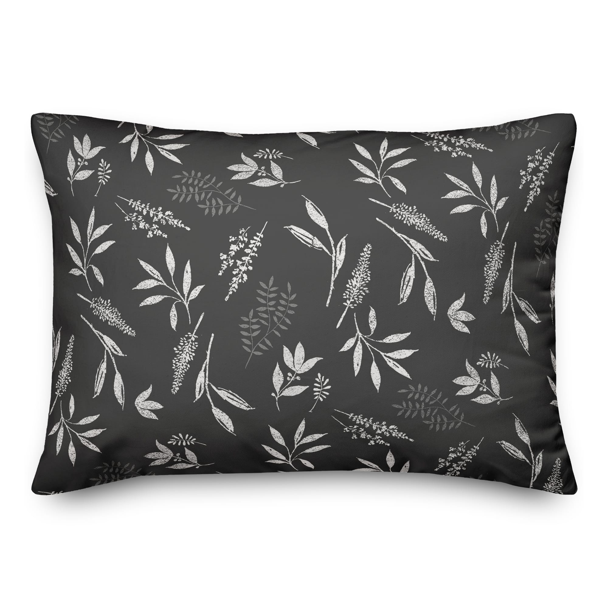 Gray Botanical Pattern Throw Pillow 14" x 20"