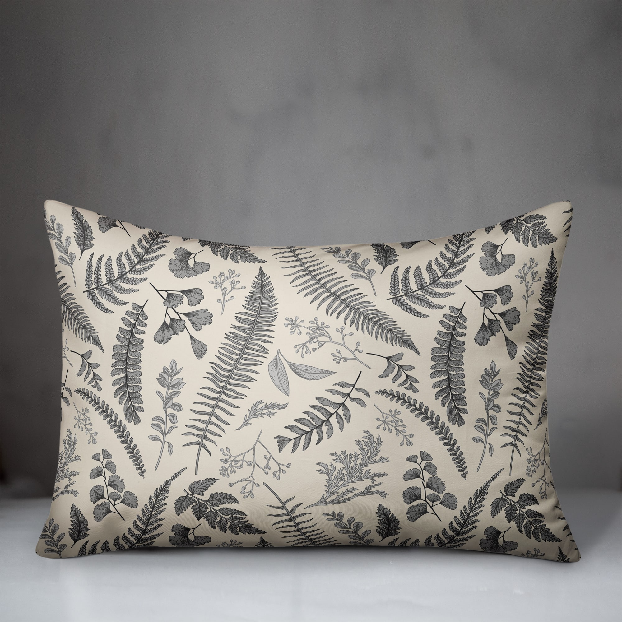 Gray Botanical Pattern Throw Pillow