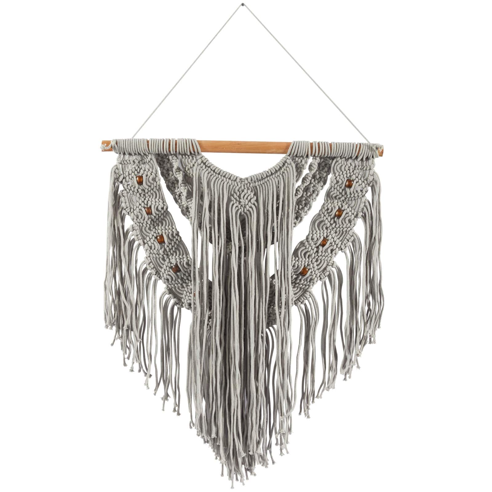 Gray Cotton Handmade Intricately Weaved Macrame Wall Decor with Beaded Fringe Tassels 32" x 1" x 42"