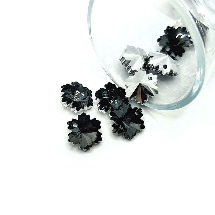 Gray Glass Faceted Snowflake Christmas Charms, 14x12mm