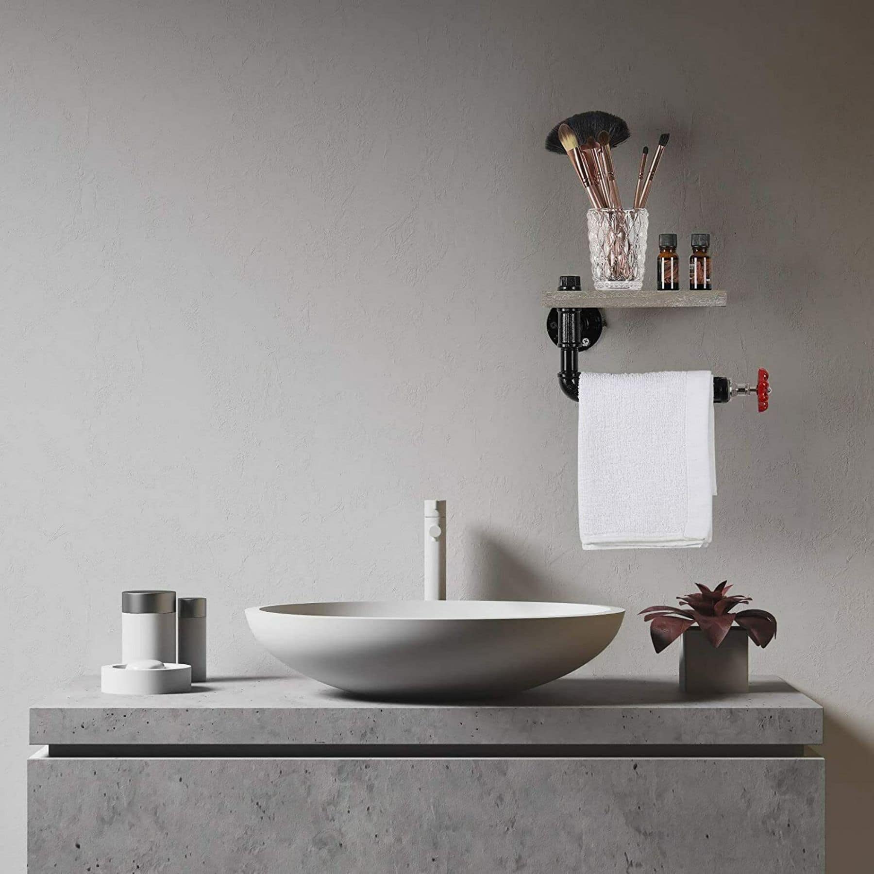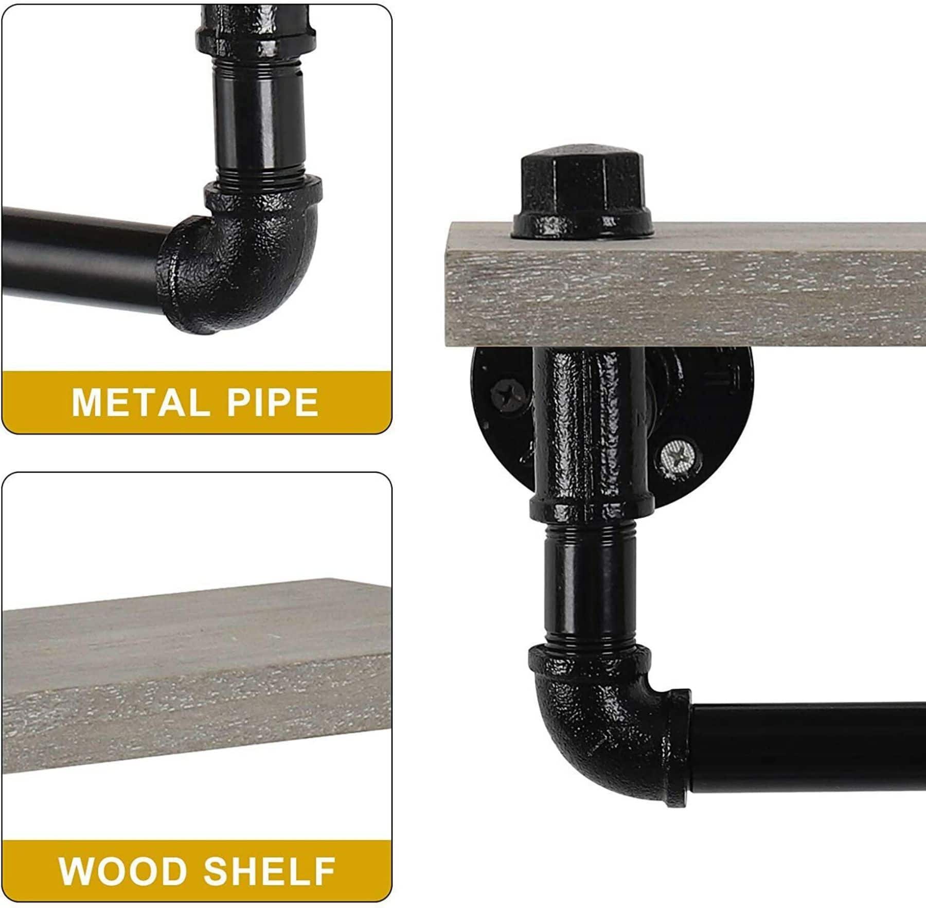Gray Industrial Wall-Mounted Rustic Toilet Paper Holder with Wood Shelf