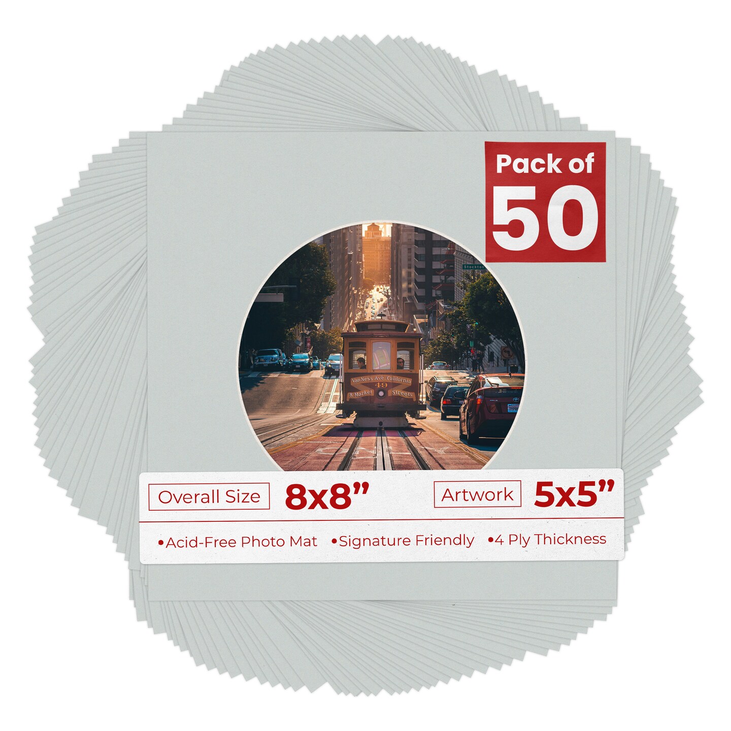 Gray Mat Board for 8x8 Frames - Circle Opening for 5x5 Photos