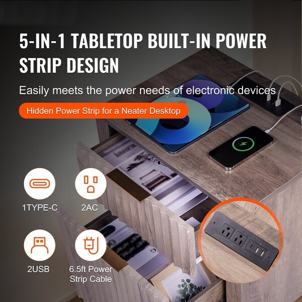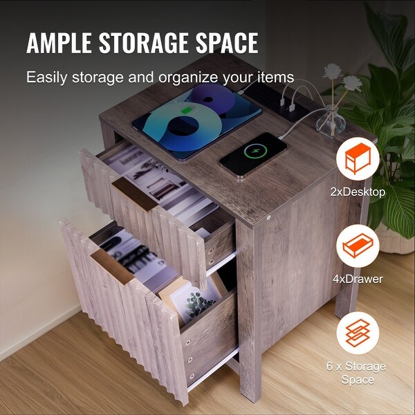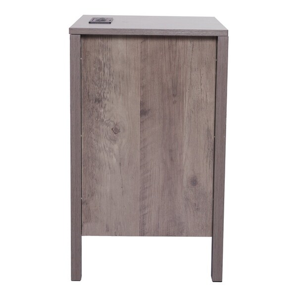 Gray Particle Board End Tables Set of 2, 2 Drawers, Power Strip and 3-Tier Set