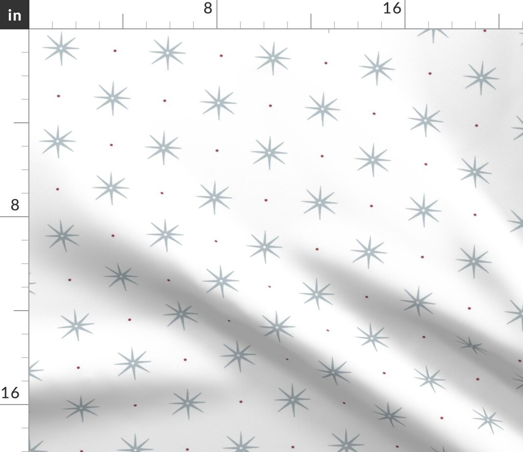 Gray Red Stars Dots Retro Vintage 50'S 60'S Geometric Astronomy Space Large Scale Custom Printed Fabric by Spoonflower Various Fabrics by the Yard or Fat Quarter