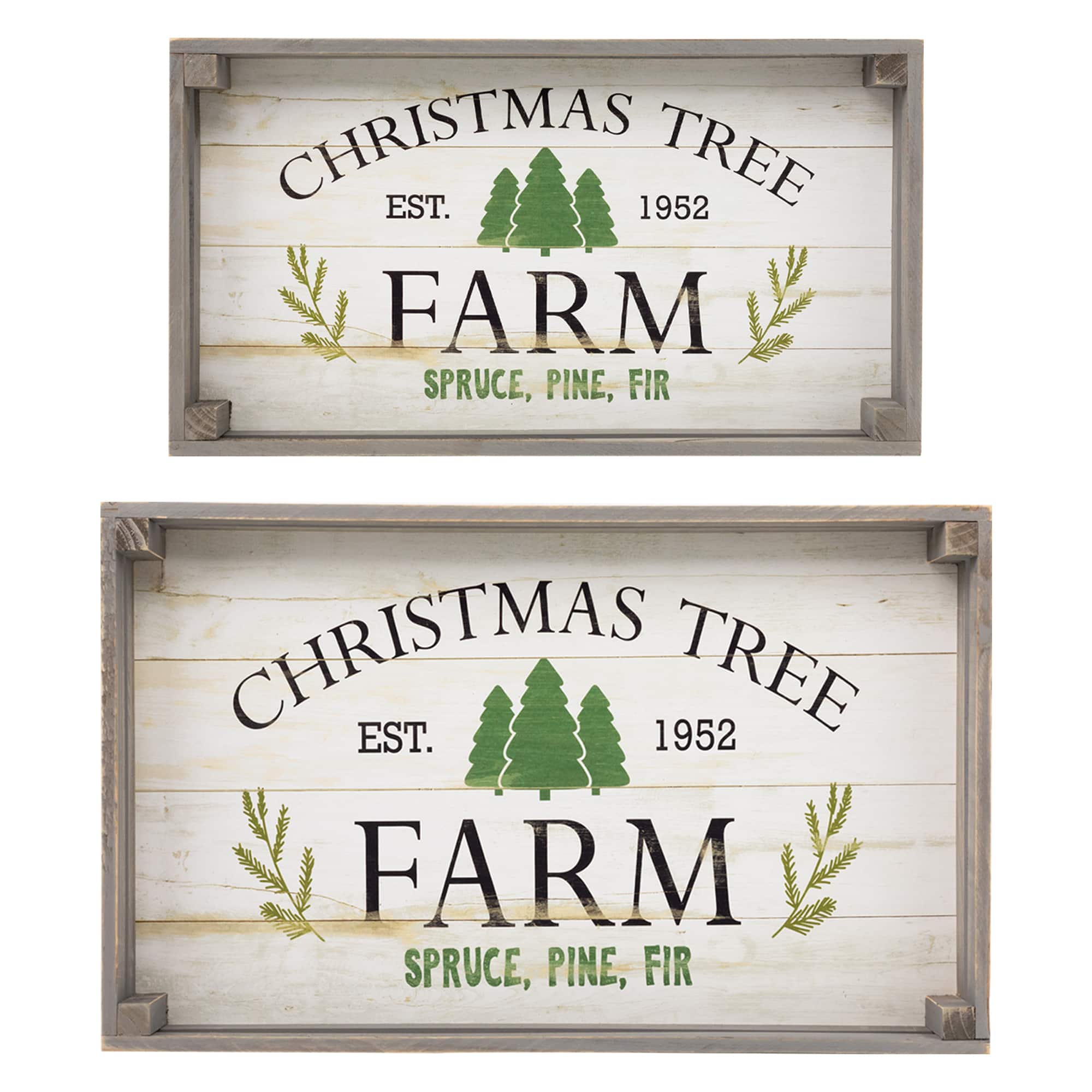Gray & White Farm Fresh Christmas Trees Wooden Tray Hanging Sign Set