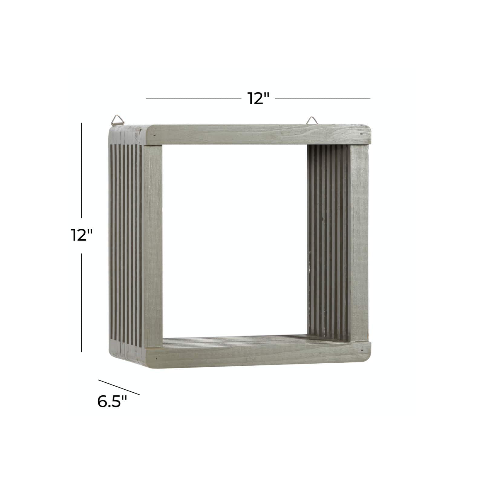 Gray Wood Contemporary Wall Shelf, 12" x 12" x 7"