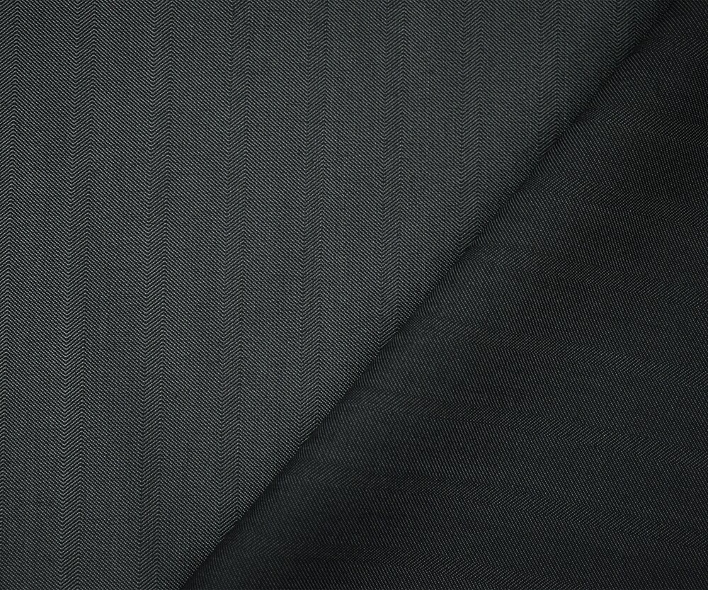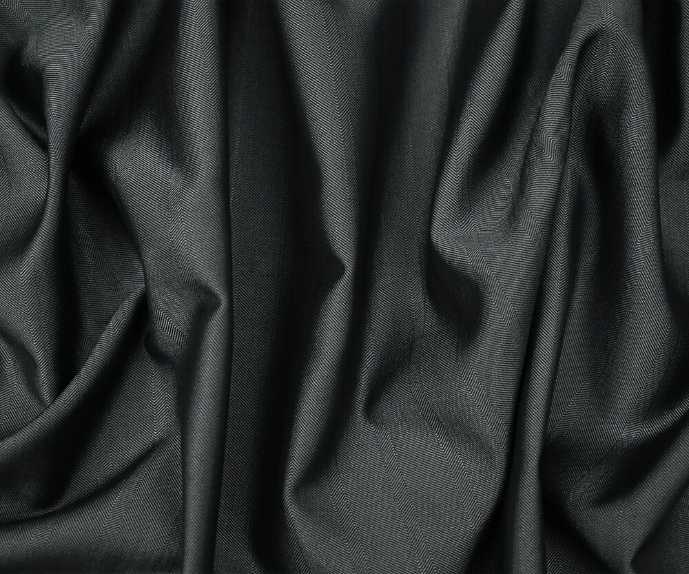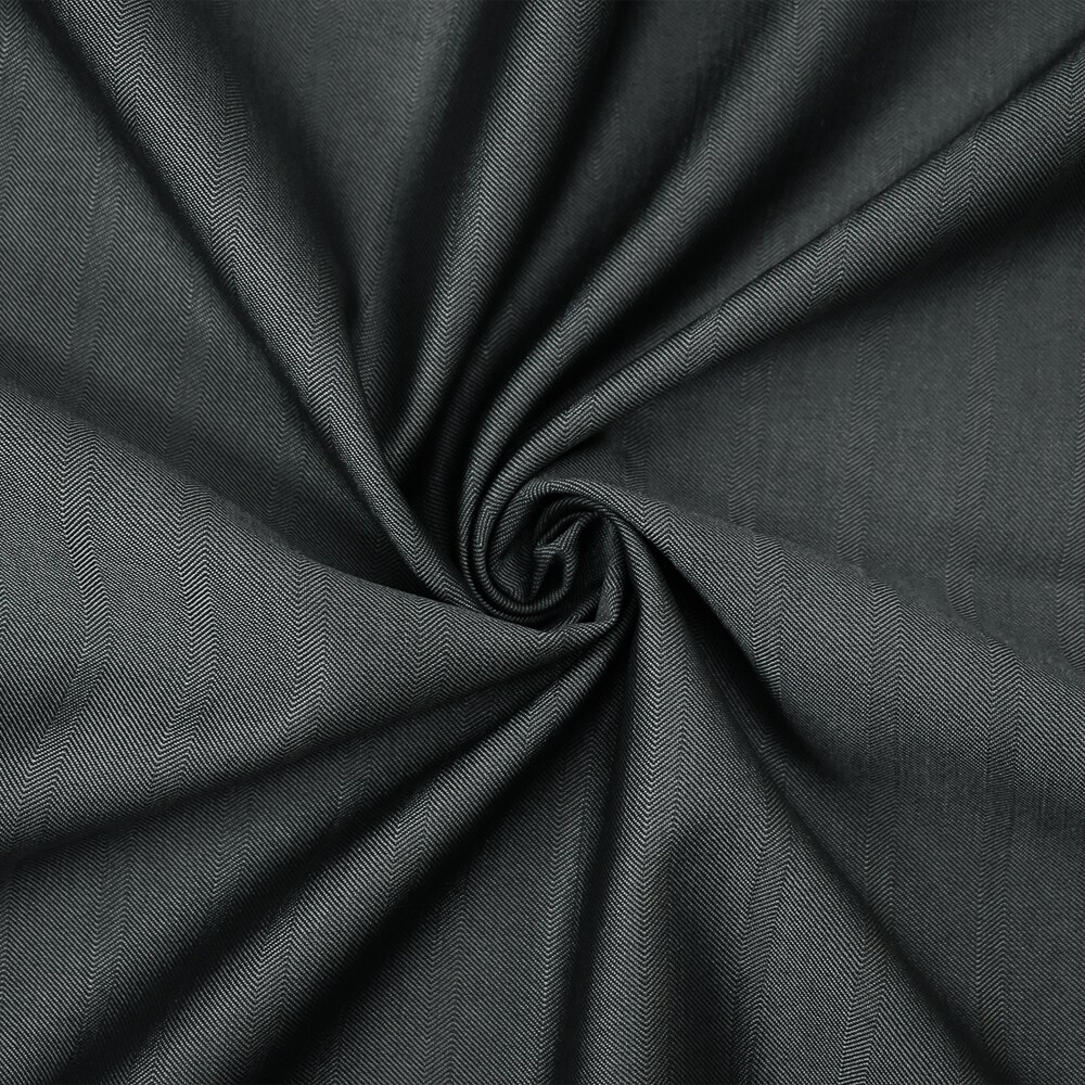 Gray-Black Wool-Polyester Irregular Herringbone Shirting Fabric By the Yard