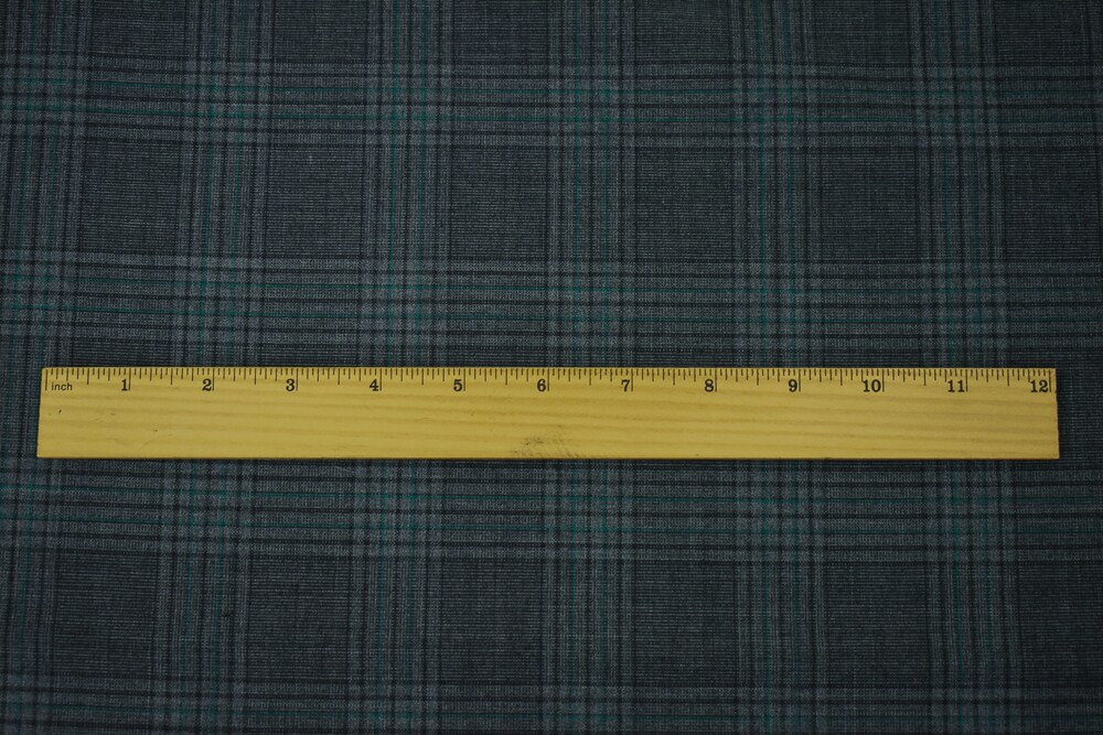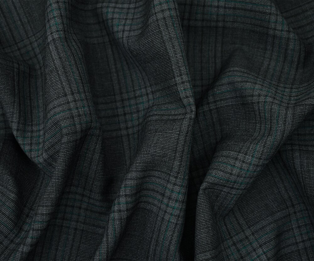 Gray-Black-Green Polyester Wool Blend Plaid Woven Shirting Fabric By the Yard