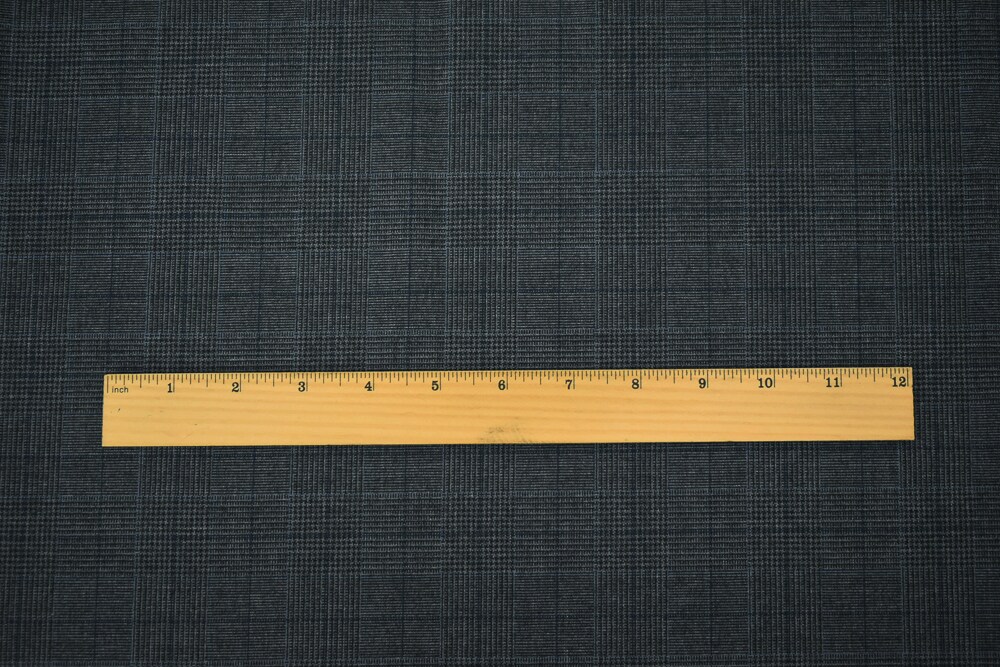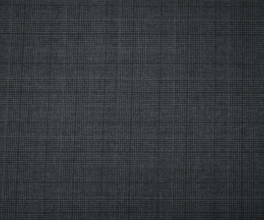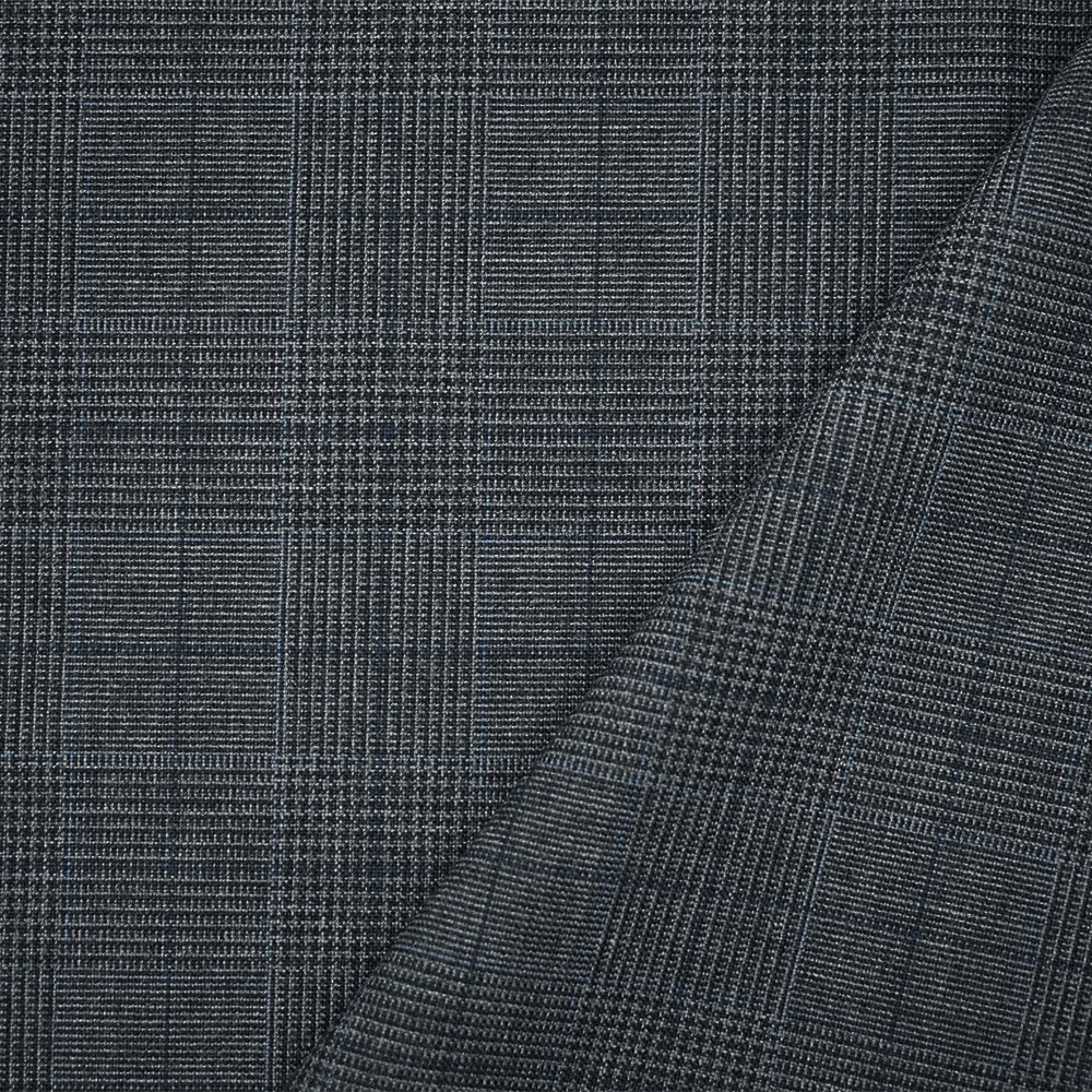 Gray-Blue-Black Polyester Wool Glen Plaid Check Shirting Woven Fabric By the Yard
