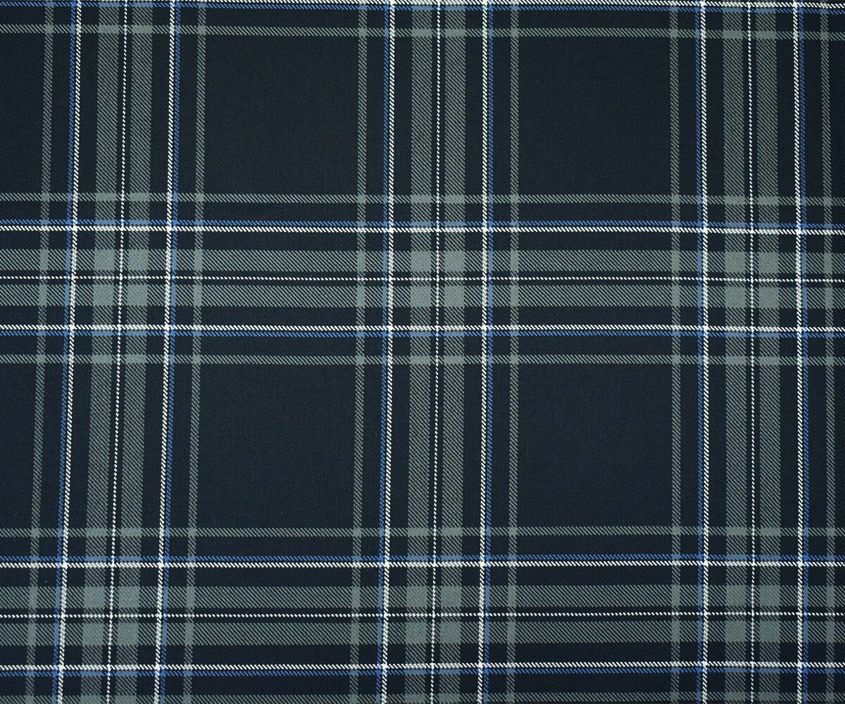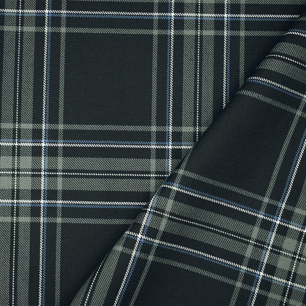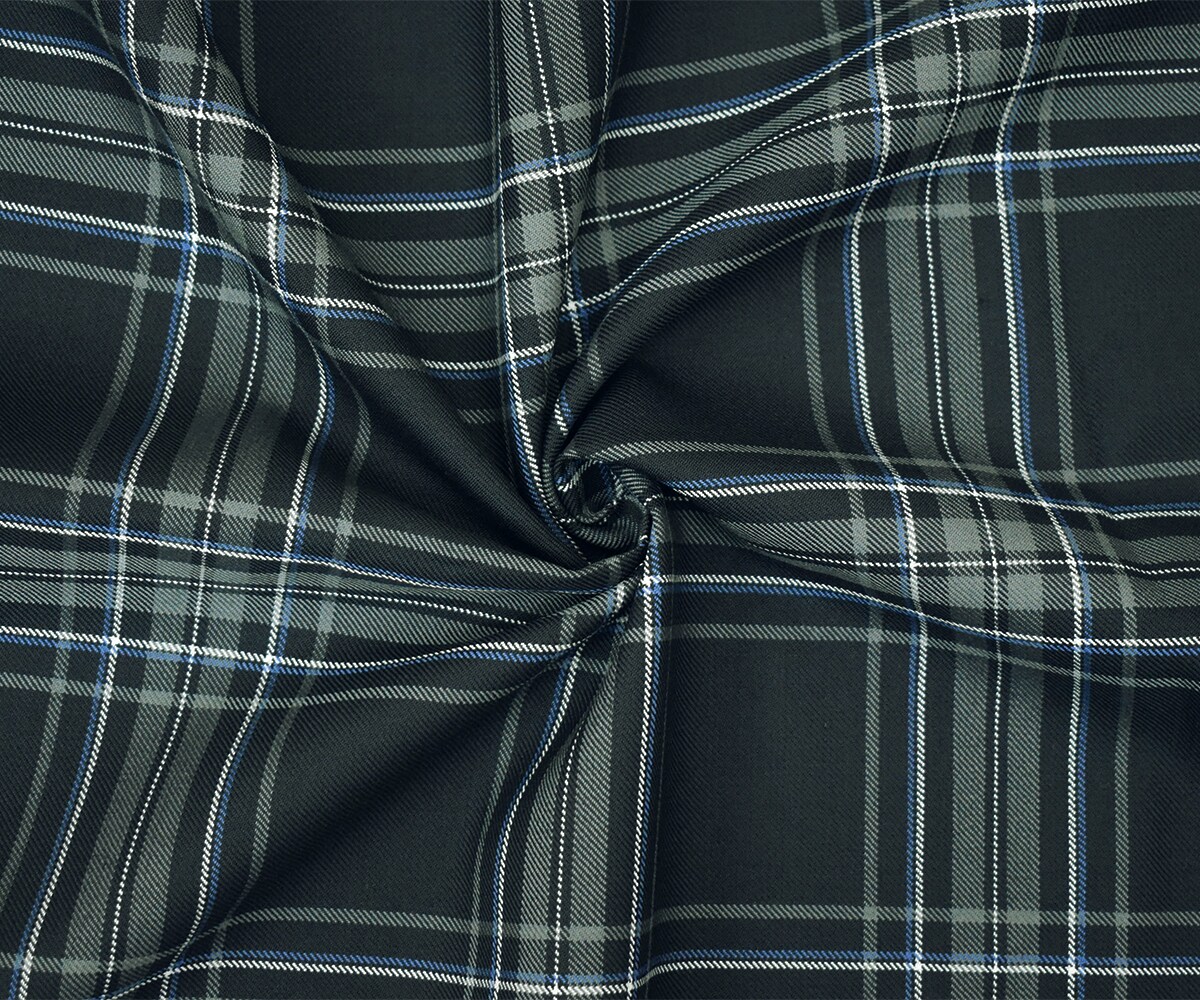 Gray-Blue-Multi Wool Polyester Plaid Twill Suiting Woven Fabric By the Yard