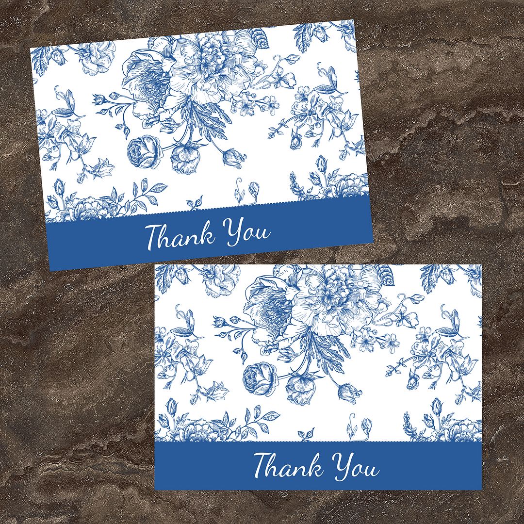 Great Papers! Blue Floral Toile Thank You Note Card and White Envelope, 4.875" x 3.375", 24 count
