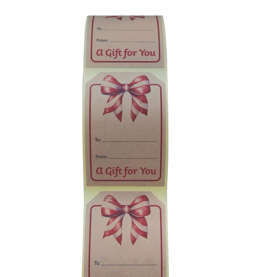 Great Papers! Holiday Sticker Roll, Kraft Bow Gift Tag, 2" x 3", 250 per roll