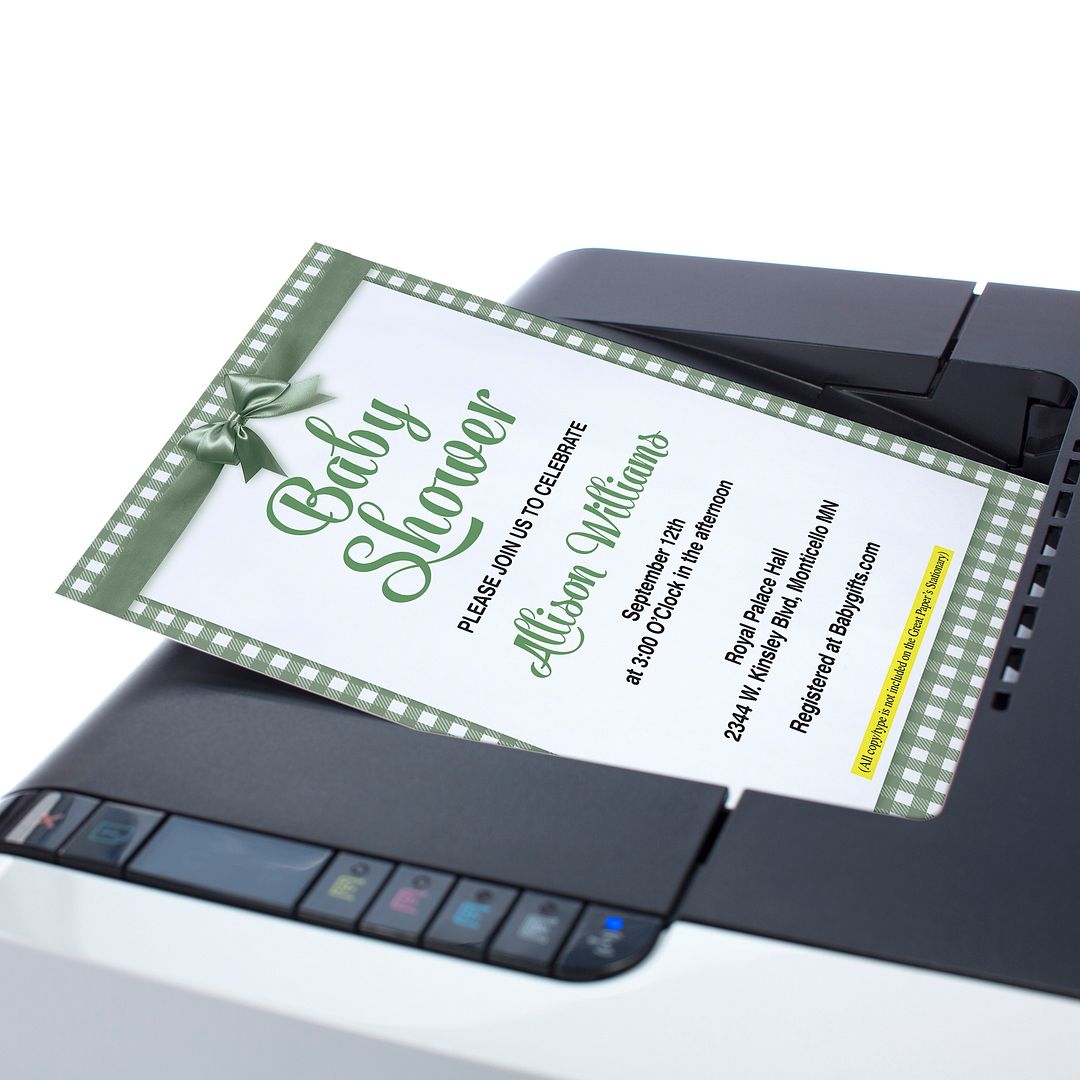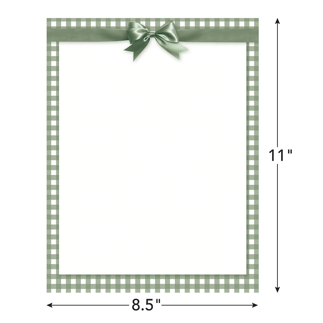 Great Papers! Sage Green Bow Letterhead, for Invitations, Announcements and Personal Messages, Printer Friendly 8.5”x11”, 50 Pack