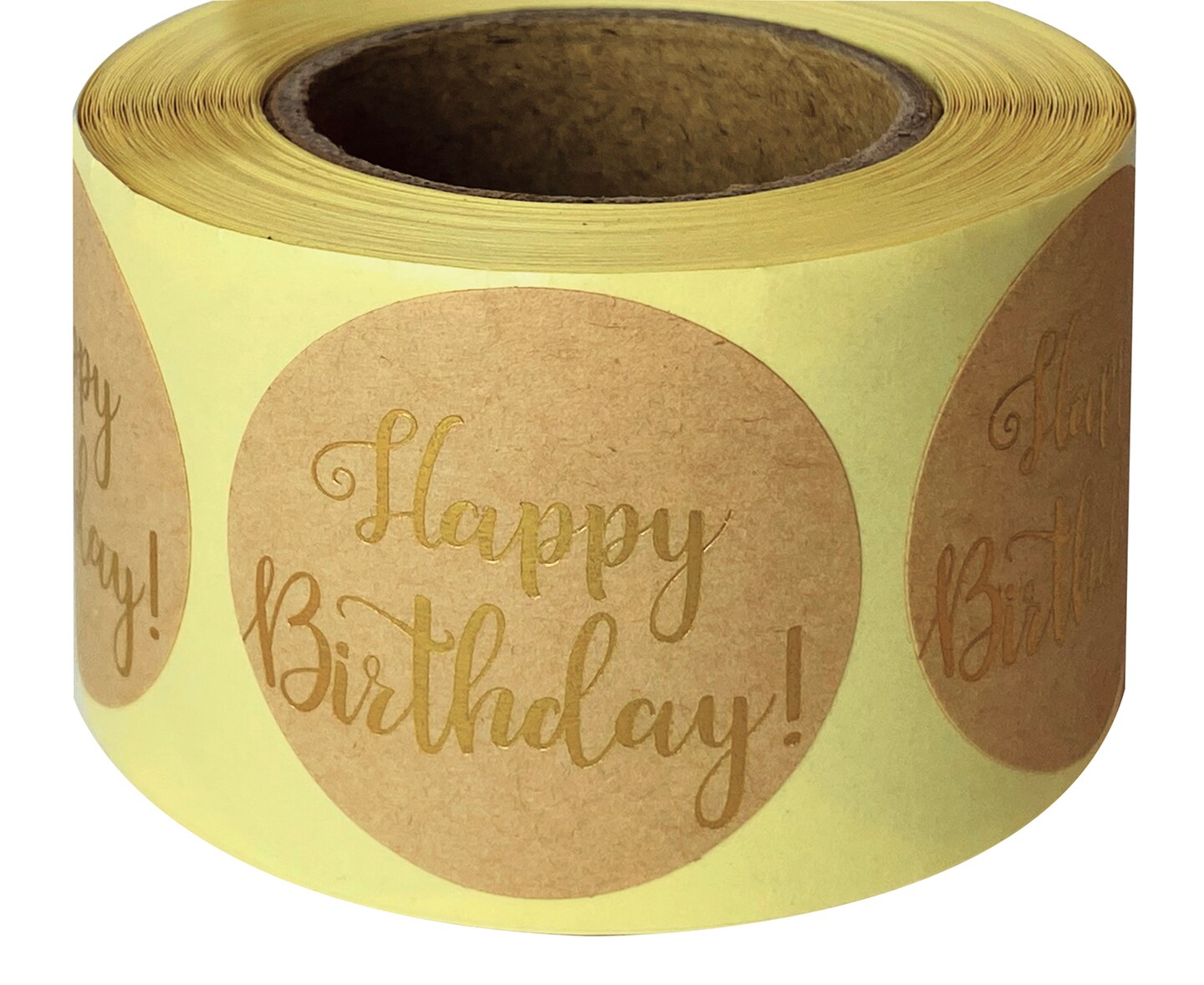 Great Papers! Seals, Self-Adhesive, Gold Foil Happy Birthday on Kraft, 1.57" Diameter, 250 Seals/Roll
