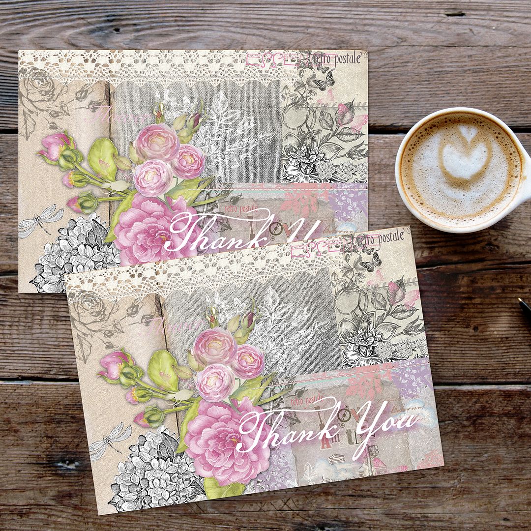 Great Papers! Vintage Scrapbook Thank You Note Card and White Envelope, 4.875" x 3.375", 24 count