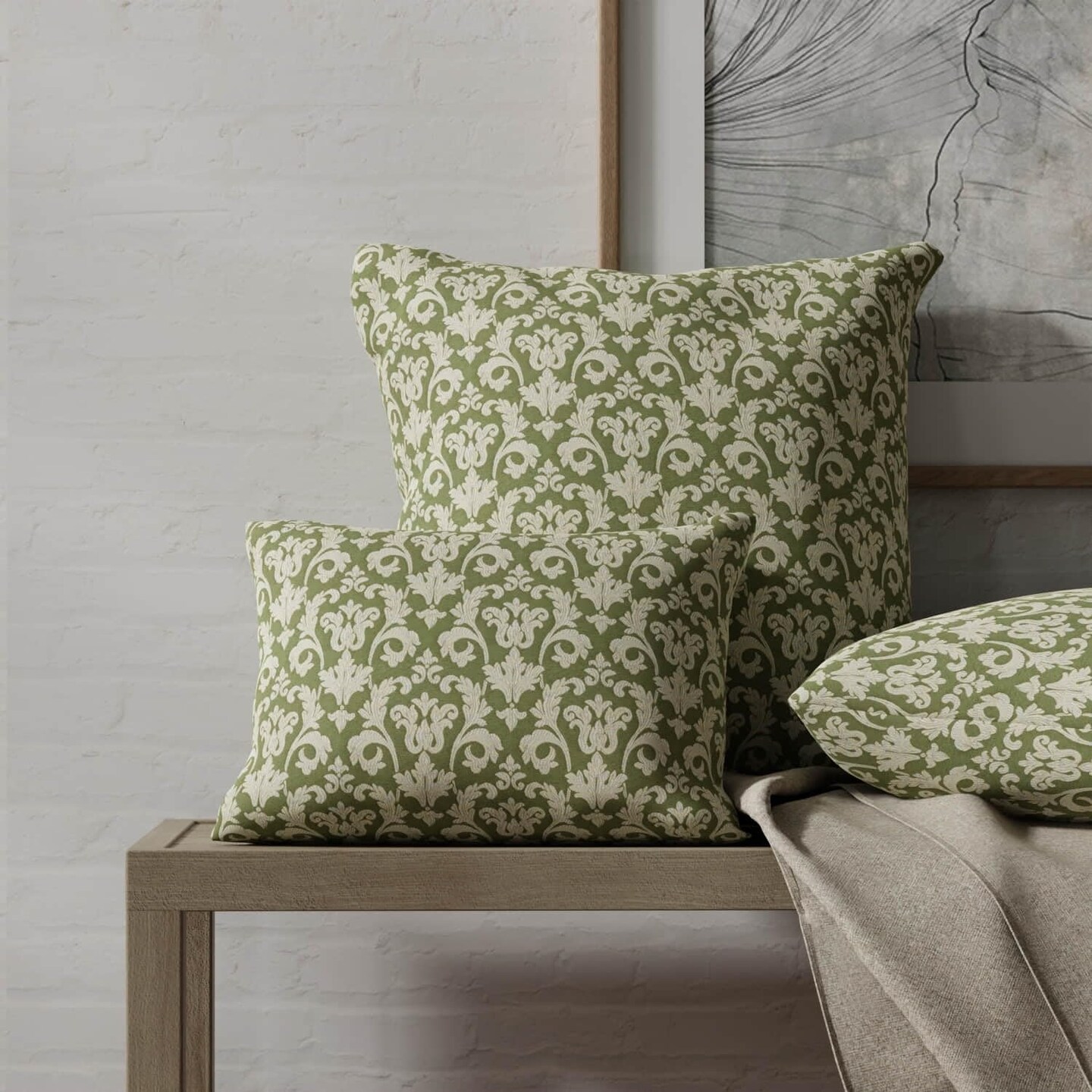 Green Abstract Damask Woven Pattern Upholstery Fabric by The Yard - SKU: Holcomb Juniper